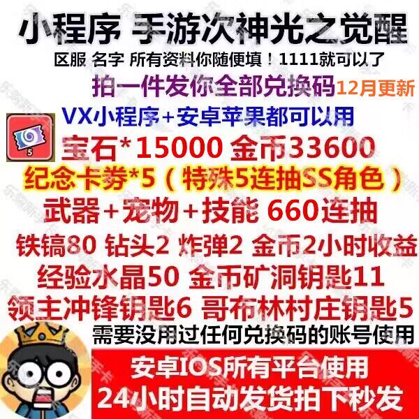 Мини -программа второй бог световой пробуждение обрядов обратно код обмена кодом обмена полным набором Gem 15000 Gold Coins Stand Pet Key Stand