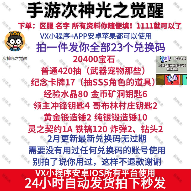 Mini Program Mobile Games Second God Light Awakening Gift Pack All 23 кода выкупа Gem 20400 420 Pump SS персонажи