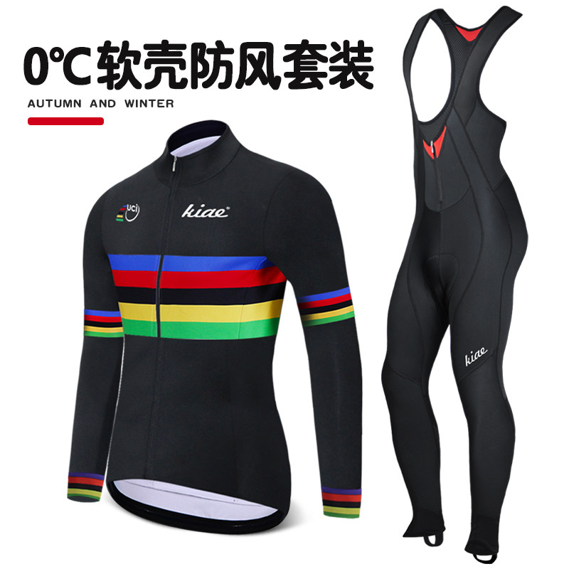 KIAE Шоссейный демисезонный дорожный велосипед, джерси, бархатный ветрозащитный комплект, удерживающие тепло горные шоссейные подтяжки, штаны, увеличенная толщина