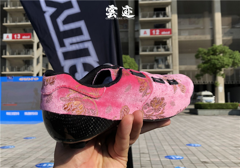 Внизу: 3K подошвы углеродного волокна могут обеспечить хорошую поддержку для долгосрочных велосипедных, резиновых защитных пленок, заменяемых набережных защитных прокладок Подошва: 3K Carbon Composite Sospose для оптимизированной жесткости длинной езды.