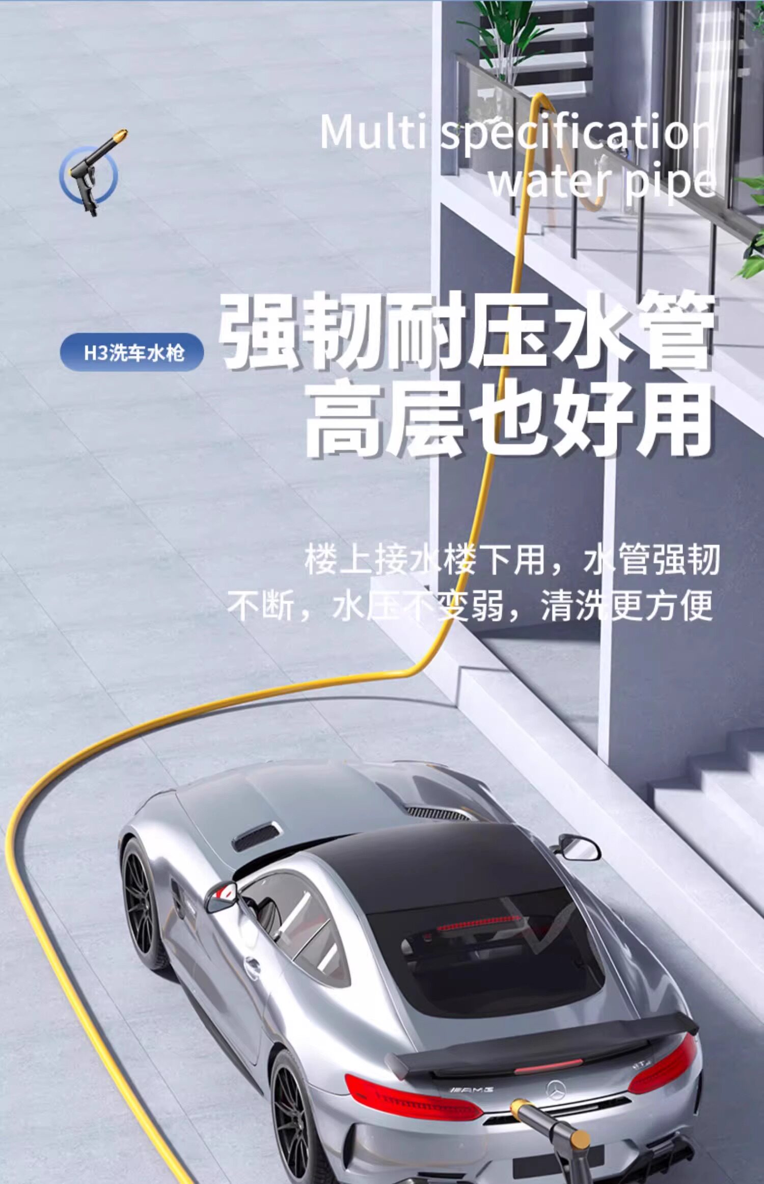 Автомобильная вода с водой домохозяйки высокое давление промывка водного водного водного шланга для промывки шланга для увеличения давления и подключения к кранам водопроводу