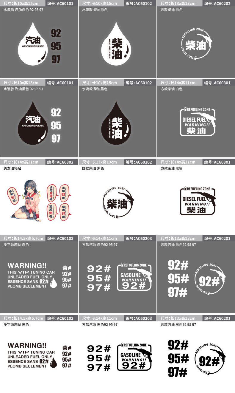 Личные наклейки с топливным баком, пожалуйста, добавьте 92 95 Дизельные наклейки с топливным баком.