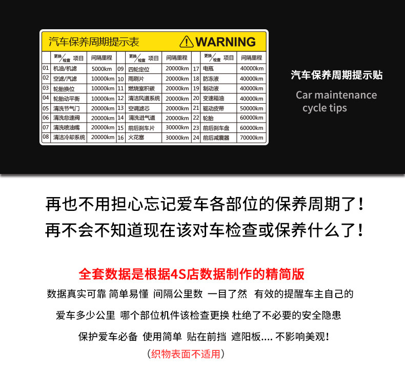 Цикл технического обслуживания CAR 4S для формирования подсказки для обслуживания автомобилей и пост -поставки -поставки регулярные наклейки на обслуживание
