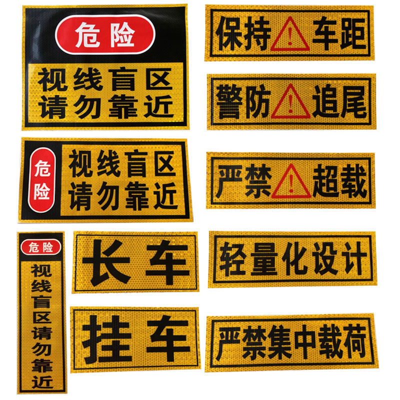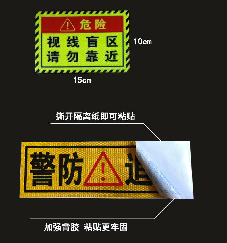 Большой трейлер грузовика, хвост машины, держите машину от машины, пожалуйста, не приближайтесь к визу наклеек предупреждения о бумаге с отражателем слепых пятностей