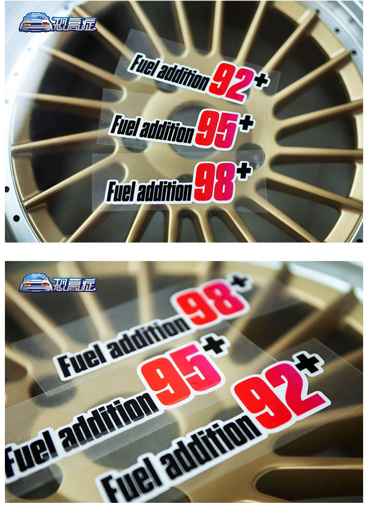 Напомните автомобильную наклейку № 92 Крышка топливного бака 98 Пожалуйста, добавьте 95 отражающих наклеек на стикеры на мотоциклете наклейки для гольфа