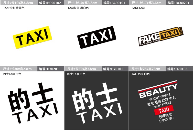 | Цвет: | Наклейка-полоска TAXI желтая черная 10*3,8 см, Наклейка-полоска ТАКСИ черно-белая 10*3,8 см, Наклейка FAKETAXI 17*3,6 см, Белая наклейка, 23 см |