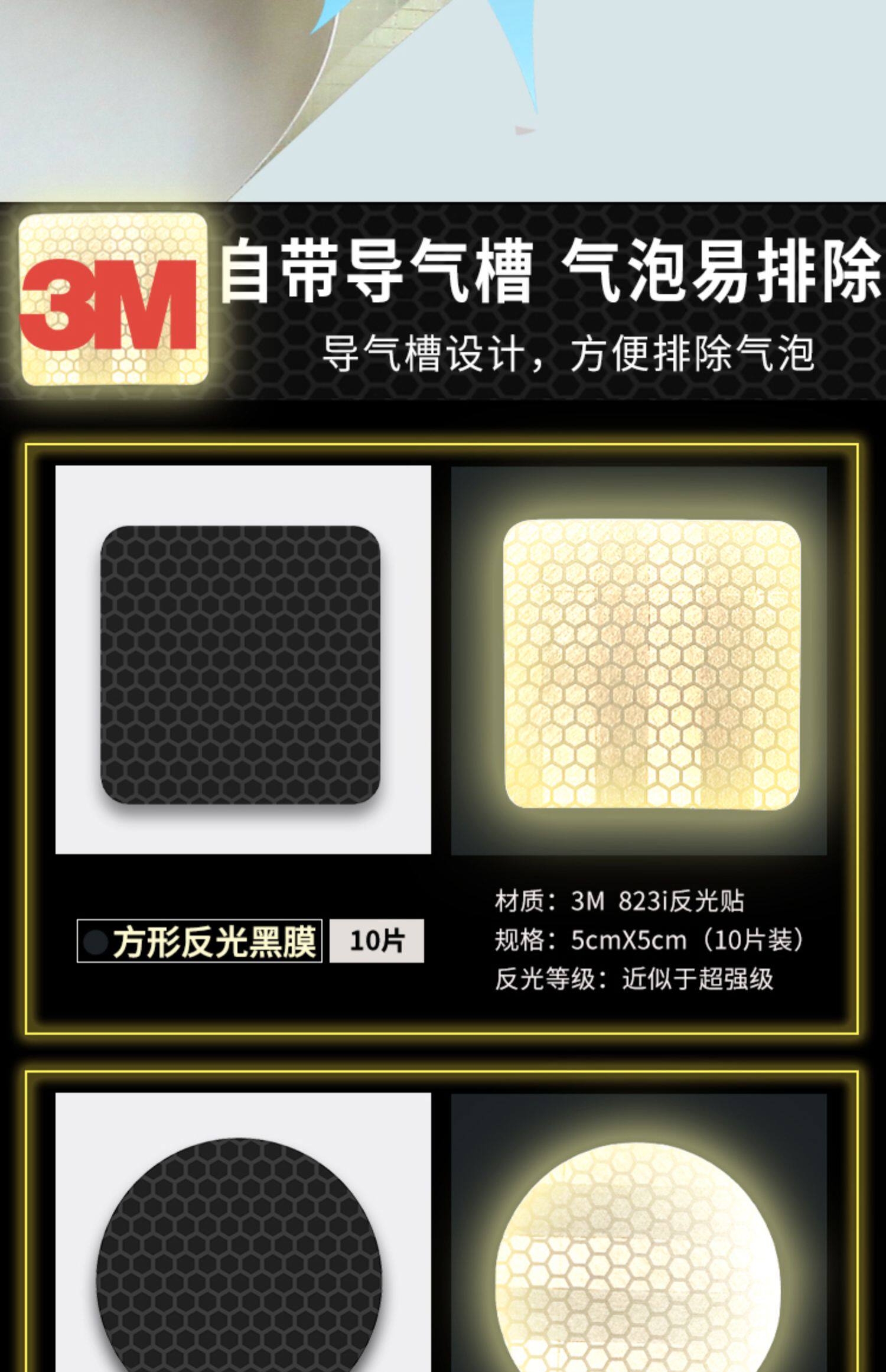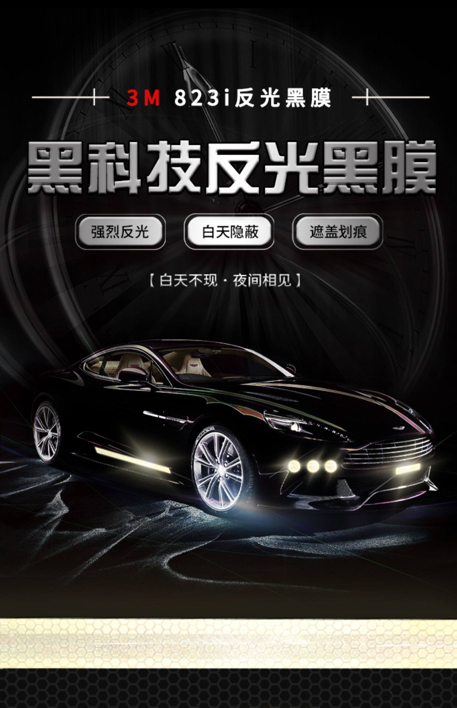 Черная светоотражательная наклейка, светящийся электромобиль, невидимый шлем