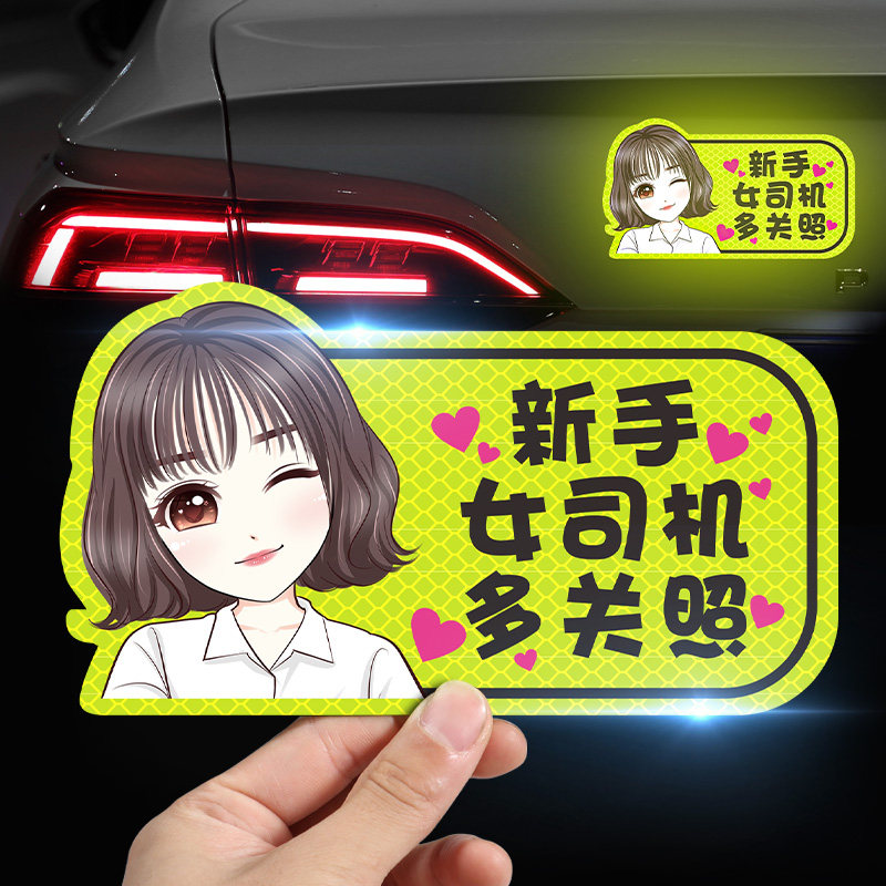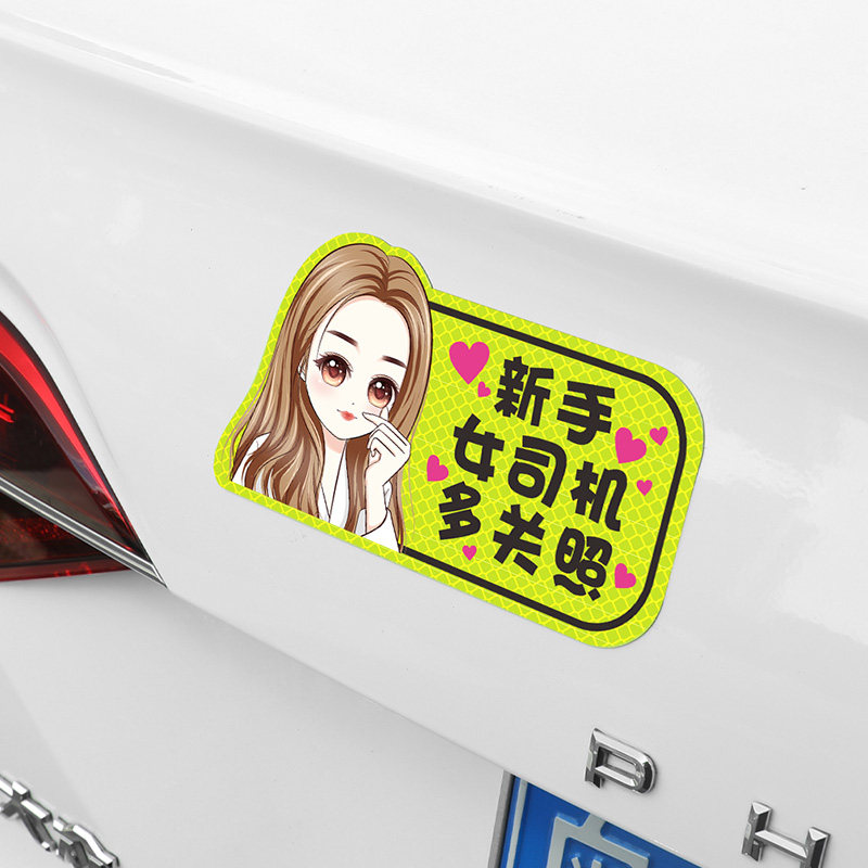 Наклейки на автомобиль-стажер магнитно привлекают женщин-водителей-новичков на дороге, креативный логотип, автомобильные магнитные царапины, блокирующие светоотражающие наклейки на кузове