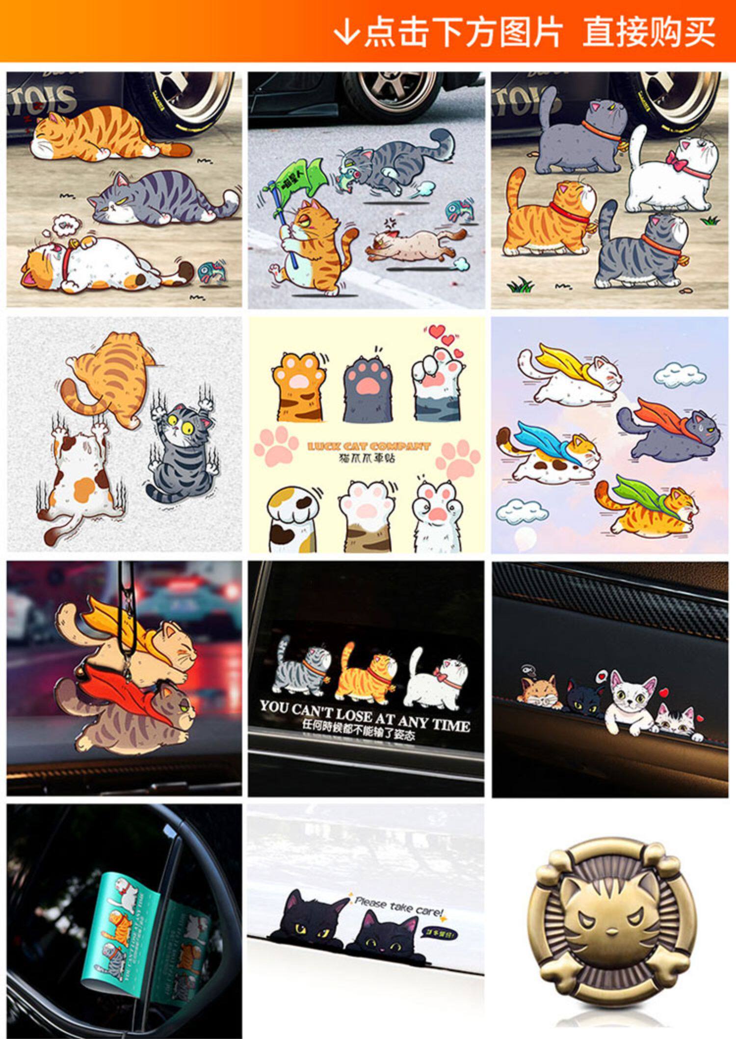 Металлическая модифицированная наклейка, электромобиль, кот