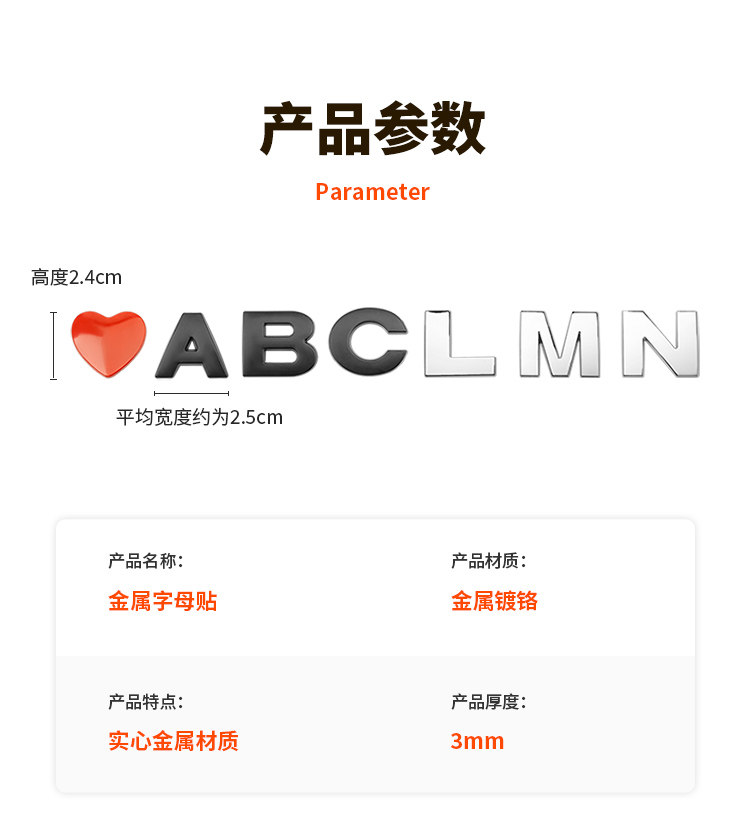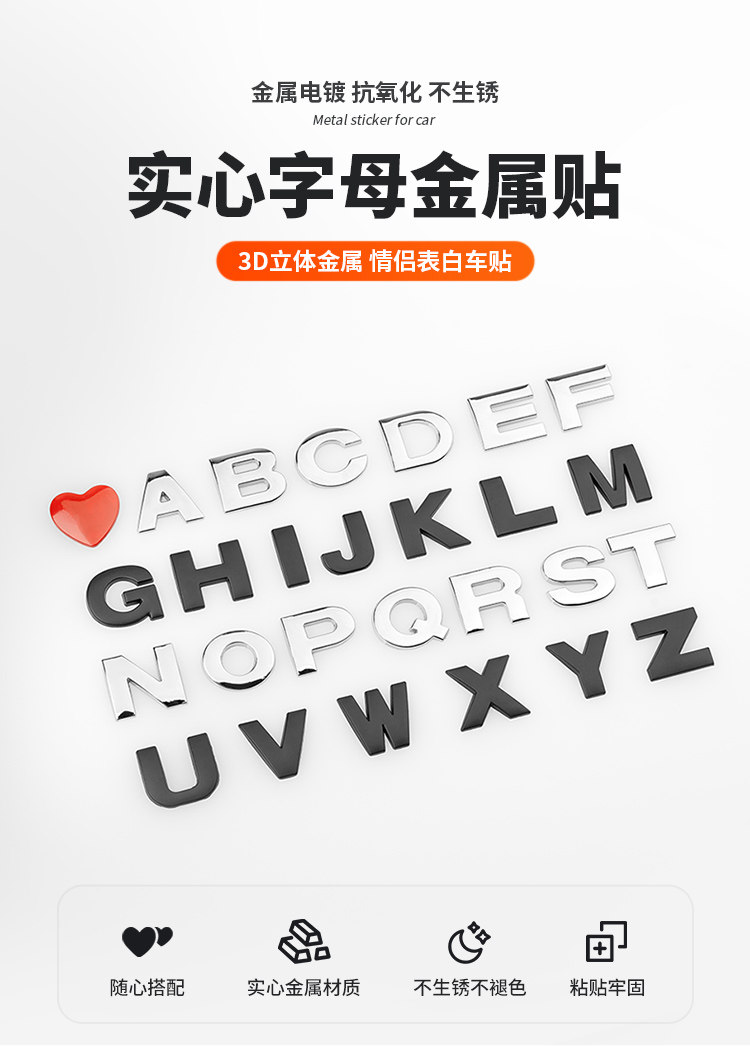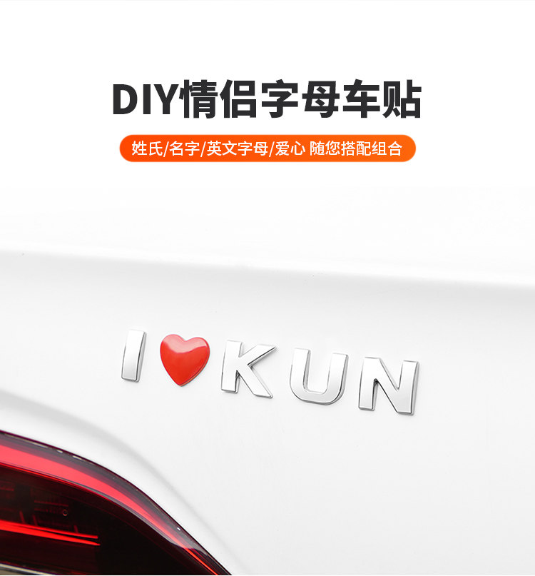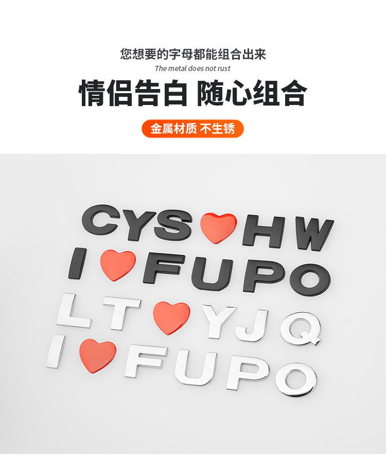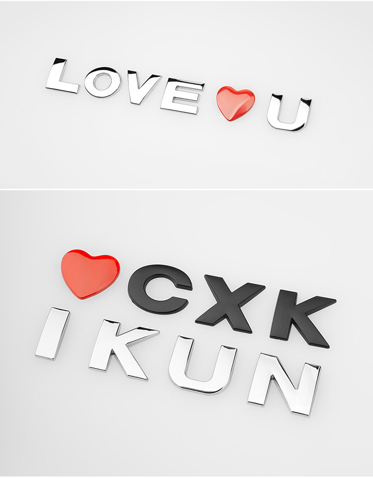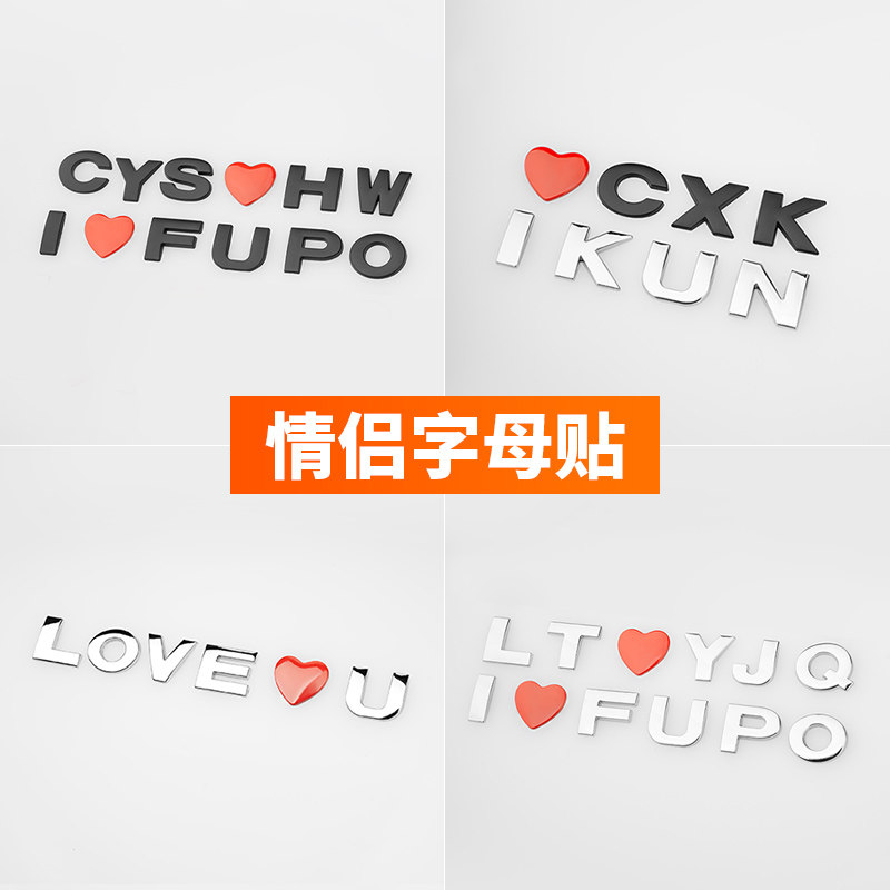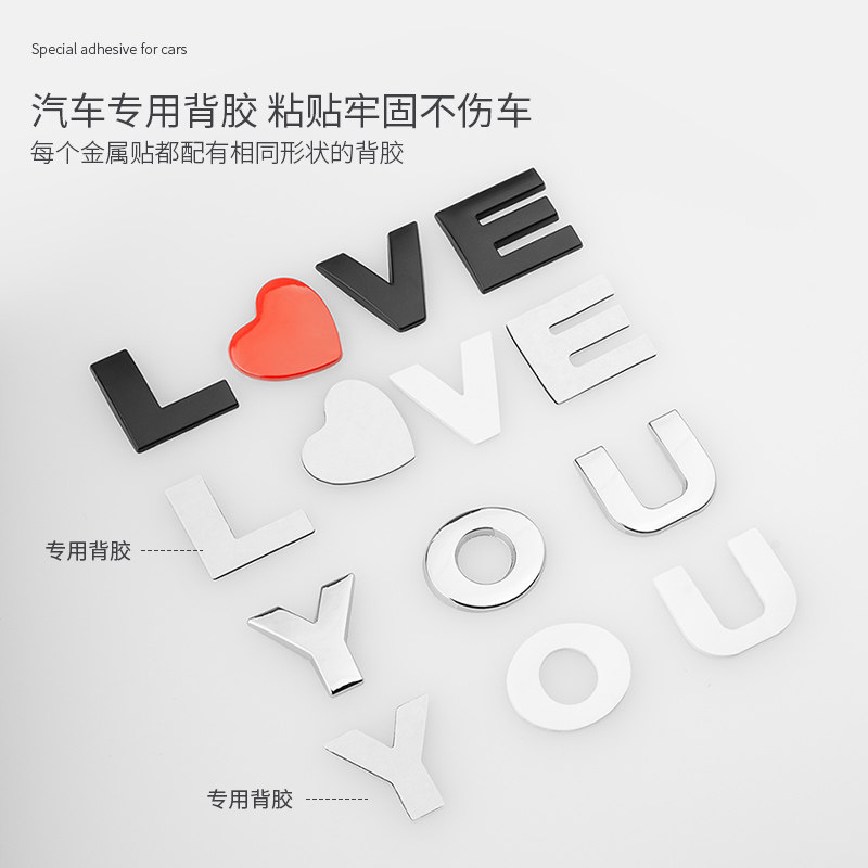 Трехмерная металлическая модифицированная наклейка для влюбленных, в 3d формате, английские буквы, делается под заказ