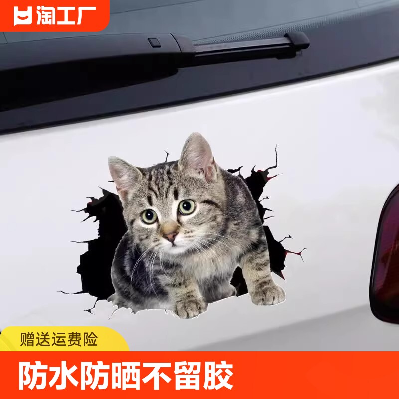 Трехмерная милая забавная наклейка, в 3d формате, котенок, кот