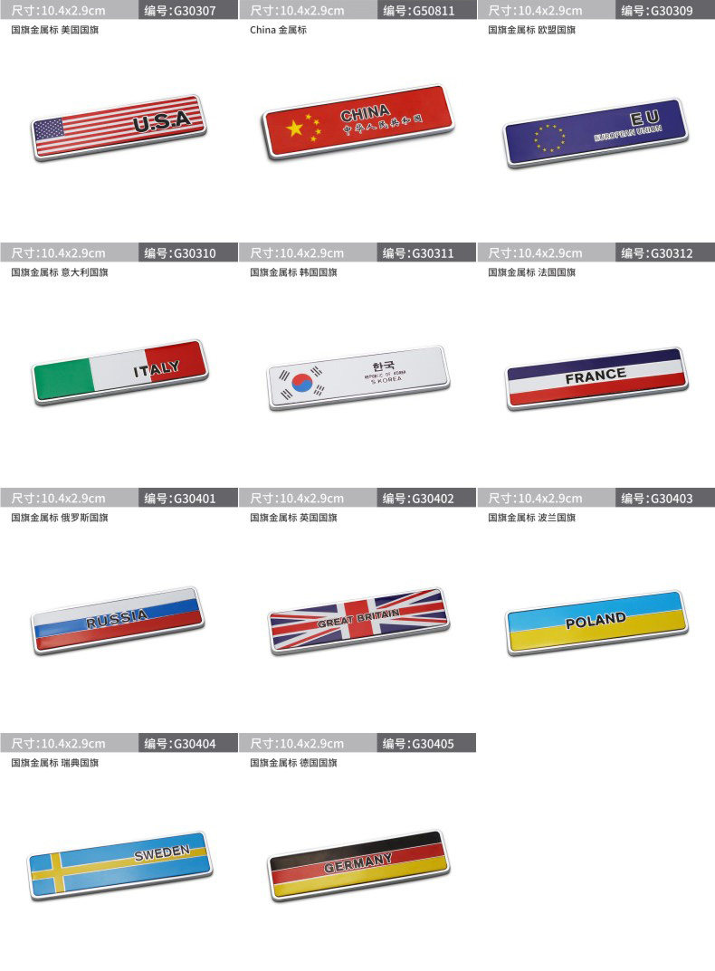 Металлическая наклейка, США, Великобритания, Германия, Франция, Италия