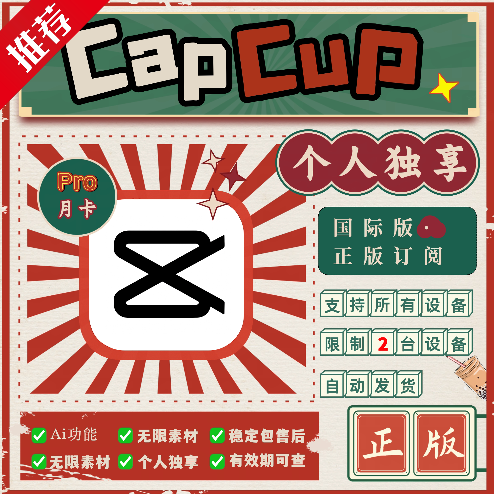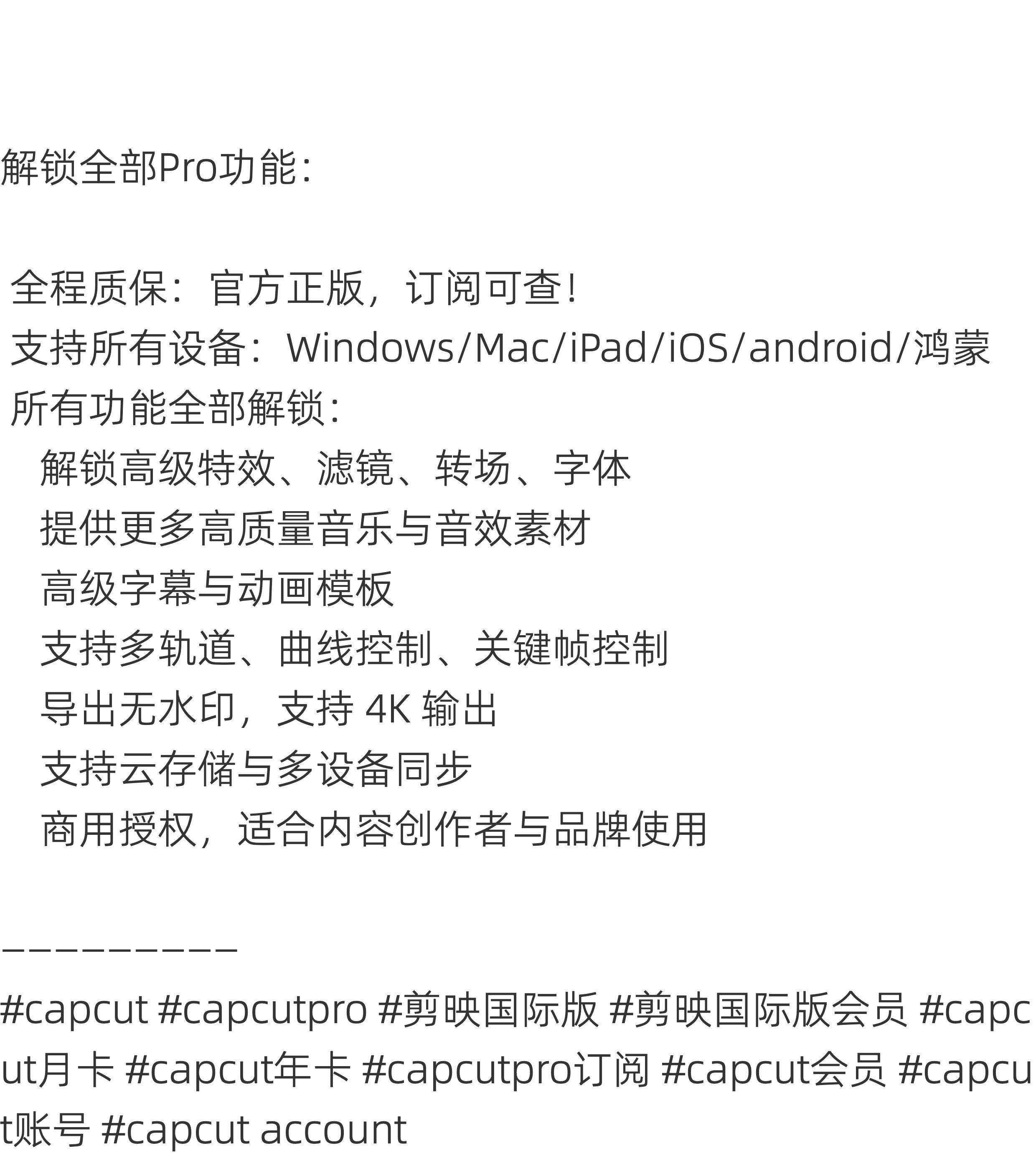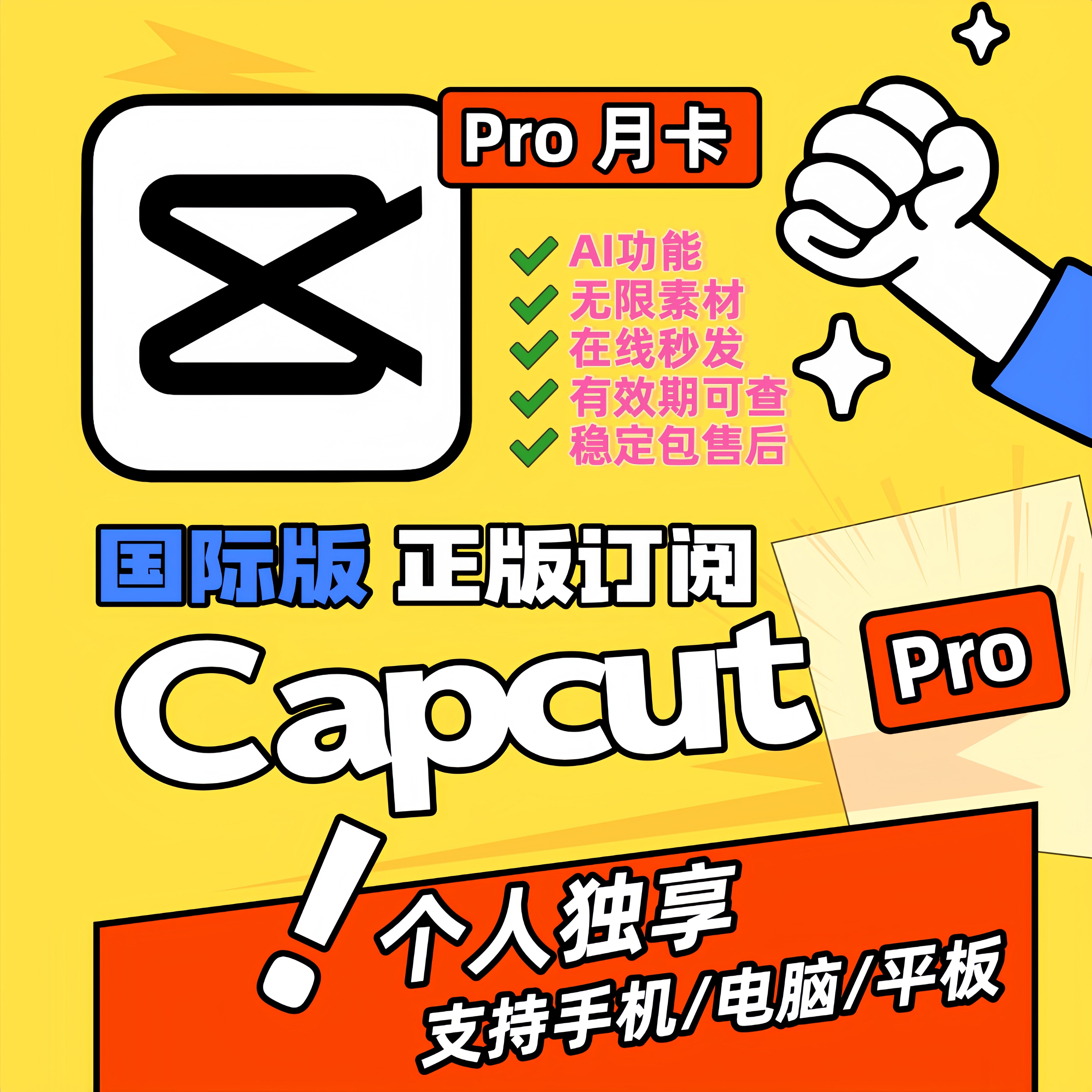 Capcut International Edition Pro 30-дневное программное обеспечение для персонального редактирования с полным набором функций, эксклюзивной и стабильной доставкой онлайн за считанные секунды