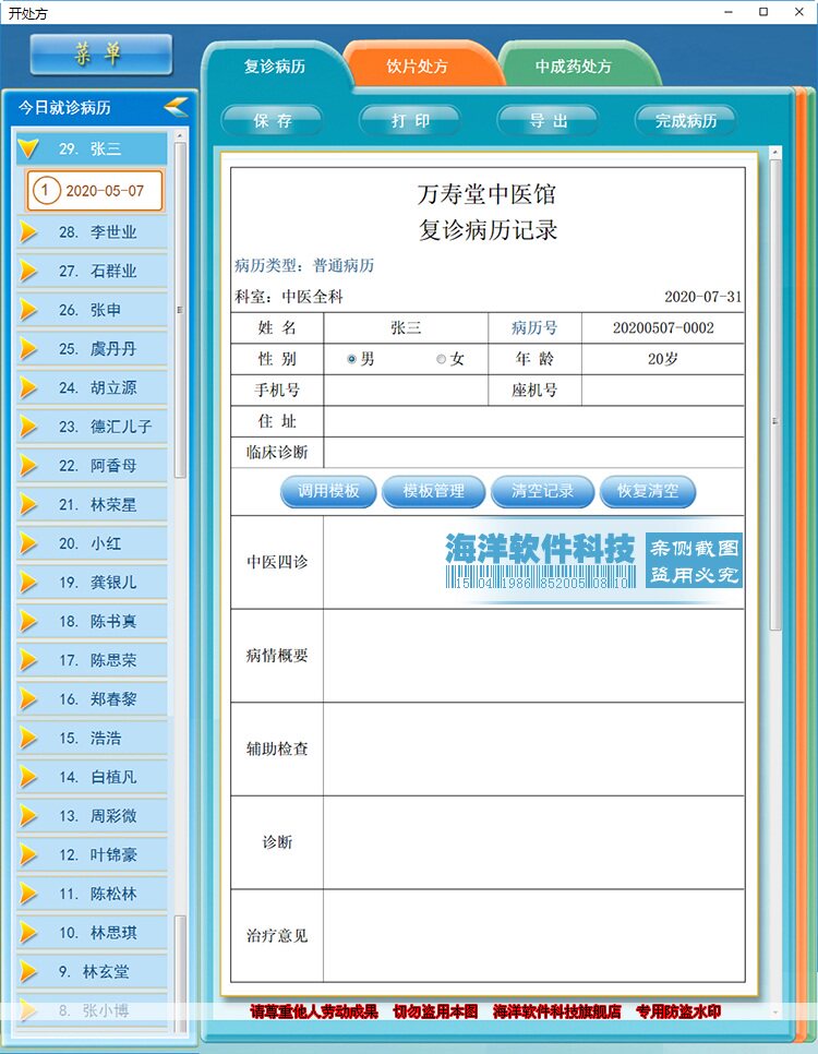 Чистый рецепт китайской системы управления медициной Основные учреждения медицинских услуг МСП, Медицинские управления, мелкие секретари, привносят больше удобства для всех аспектов вашей работы!Безопасность и беспокойство -бесплатная, простая работа и мощные функции!