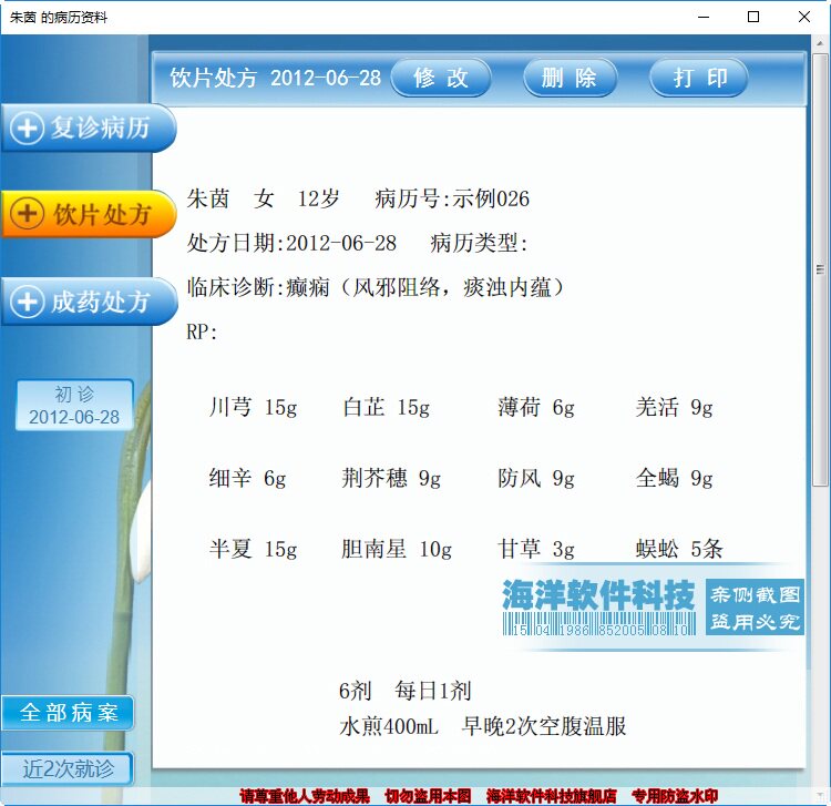 Название программного обеспечения:Система управления рецептами чистой китайской медицины