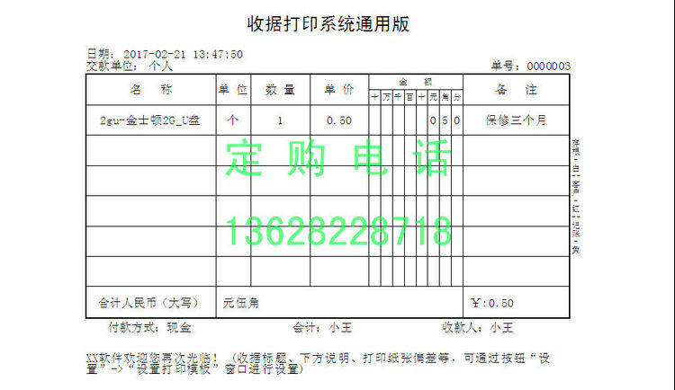 Квитанция о сборе программного обеспечения для печати Общая версия 6 доставка одиночный продавец единый шаблон третий класс Вторичный