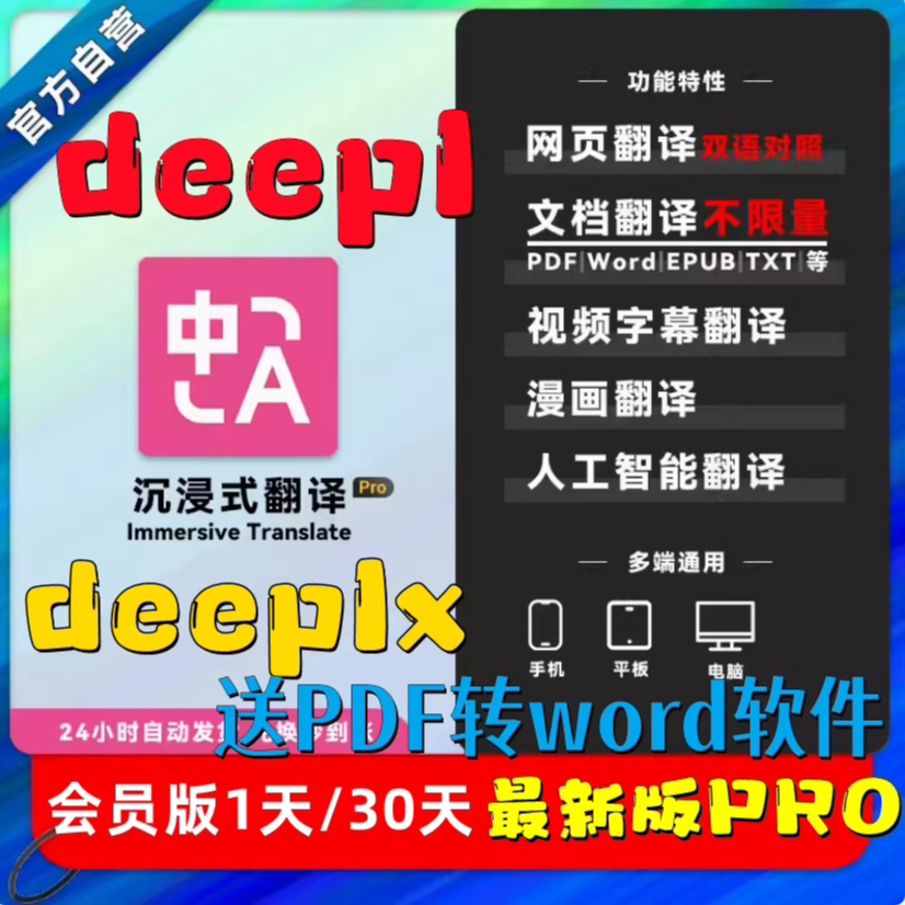 | Выпуск: | Immersive Membership Pro (3 дня, официальная квота), Immersive Membership Pro (один месяц, официальная квота), Иммерсивное членство Pro (один год), Immersive Membership Pro (один месяц, пополнение счета), Immersive Membership Pro (один год, пополнение счета), Глубокий безлимит (1 день), Глубокий безлимит (30 дней), Глубокий безлимит (90 дней), Deepl безлимит (пол года), Deepl безлимитный (один год), Deepl неограниченный (три года), PDF Pro перевод квоты, authkey |