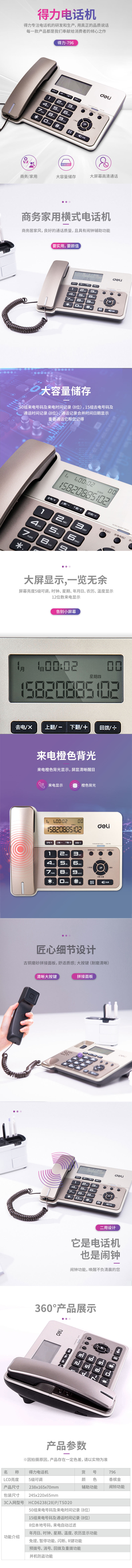 Deli 796 Телефонное сиденье офис домохозяйственной телефонной телефонной камеры Диссертация дисплей фиксированный телефон