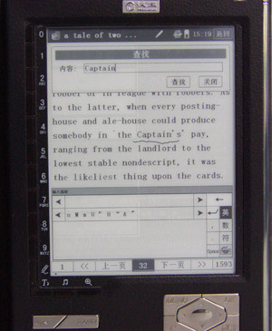 При чтении книг формата TXT и HTML, в дополнение к мгновенным функциям перевода, Hanwang N518 также обеспечивает полную функцию поиска.Мы можем вводить символы с помощью рукописного ввода.Это очень полезная функция.