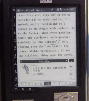 При чтении TXT/HTML English Books с N518 вы можете легко перевести.Технология распознавания текста Хана Вана действительно хороша. Когда читатель нам нужно только нажать на соответствующие слова в соответствующих словах, и мы выпрыгнем из перевода этого слова.Есть несколько слов, которые показывают изображение изображения впереди.Эта функция очень полезна при чтении английских материалов. N518 может автоматически определить, является ли это словом в зависимости от того, есть ли интервал между двумя словами.