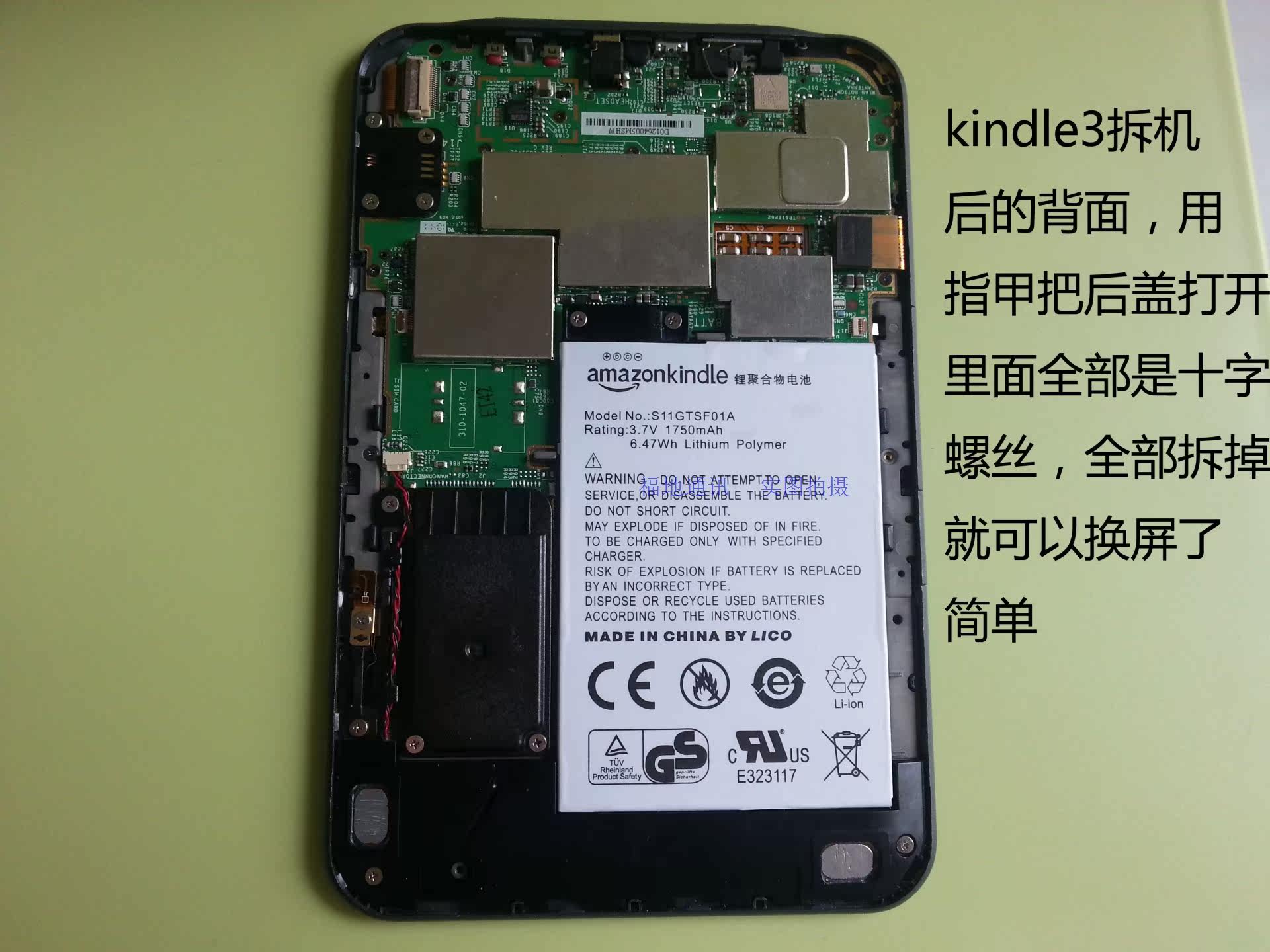 Kindle4 труднее разобрать (в клейке много мест). Вам нужно использовать ногти, чтобы поднять переднюю раму (клей), а затем толкнуть пряжку задней крышки мулом, а затем разобрать материнскую плату.