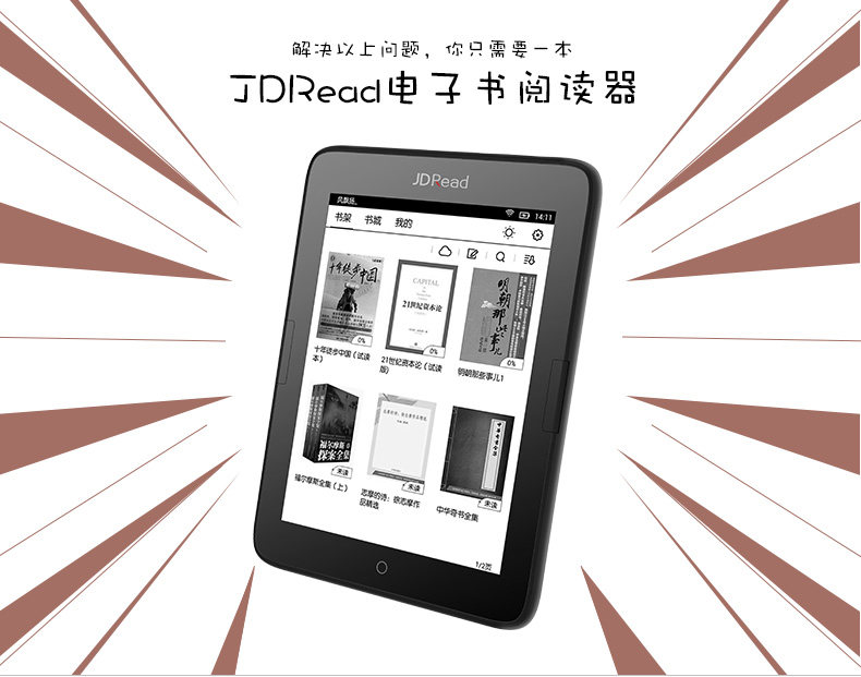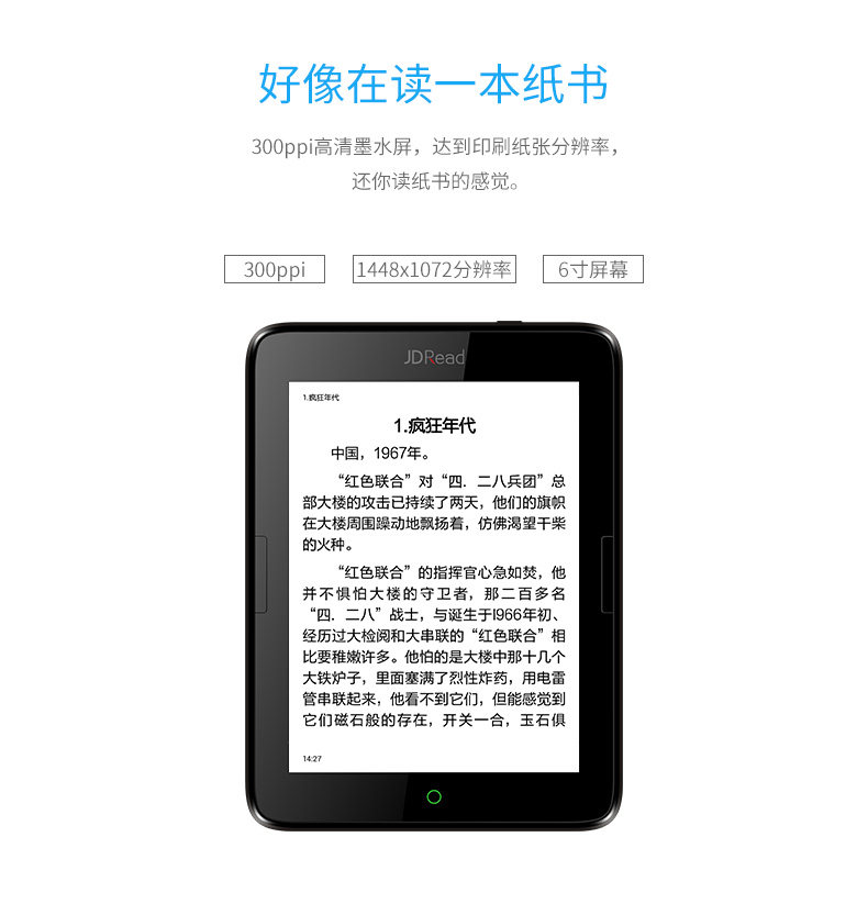 Bo Yan Jdread 1 Jingdong E -Book Reader T63 с передним светом Android -рука с шокированной бумажной книжкой экран чернил