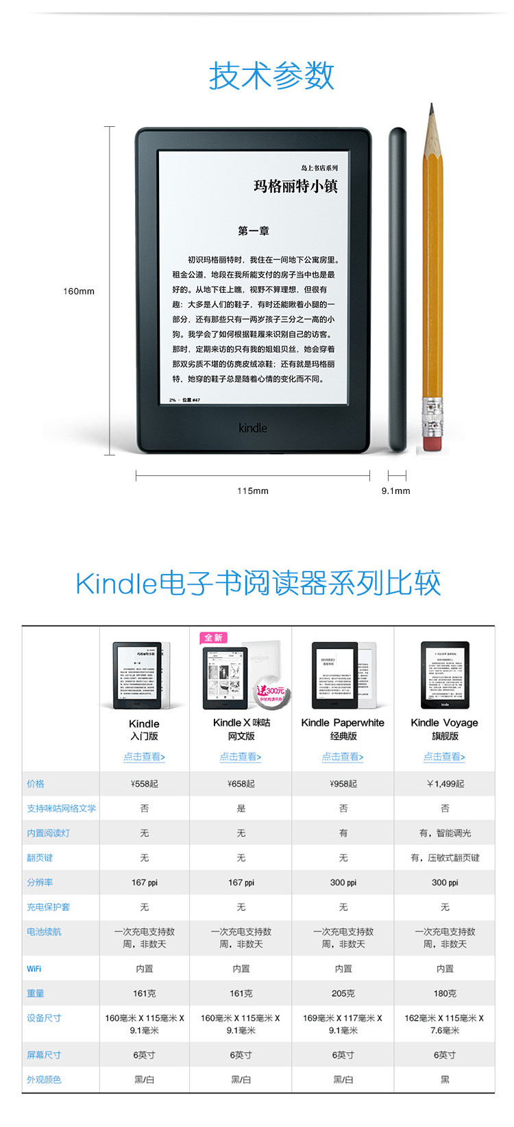 Базовое электронное чтение, сенсорные чернила, Amazon, сенсорный экран, 6 дюймов