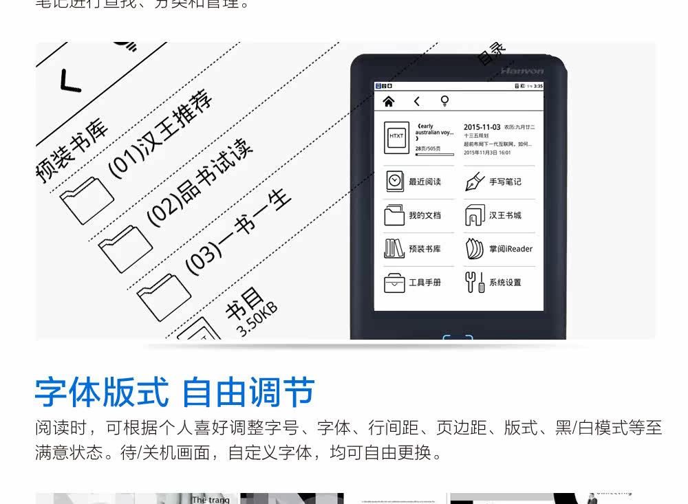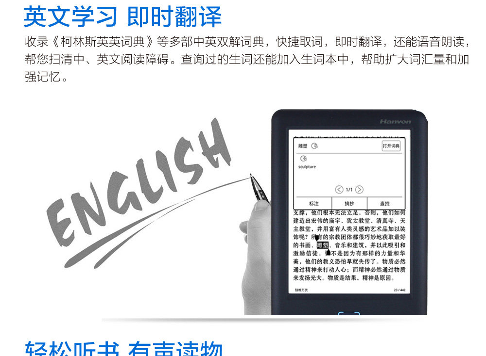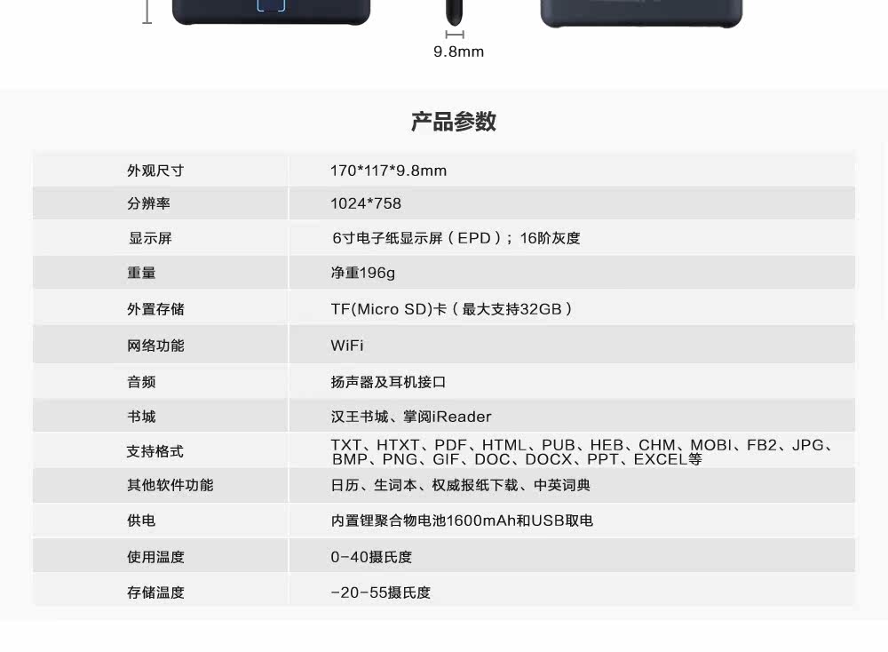 汉王 Электронное чтение, золотые ультратонкие чернила, 6 дюймов, широкий экран