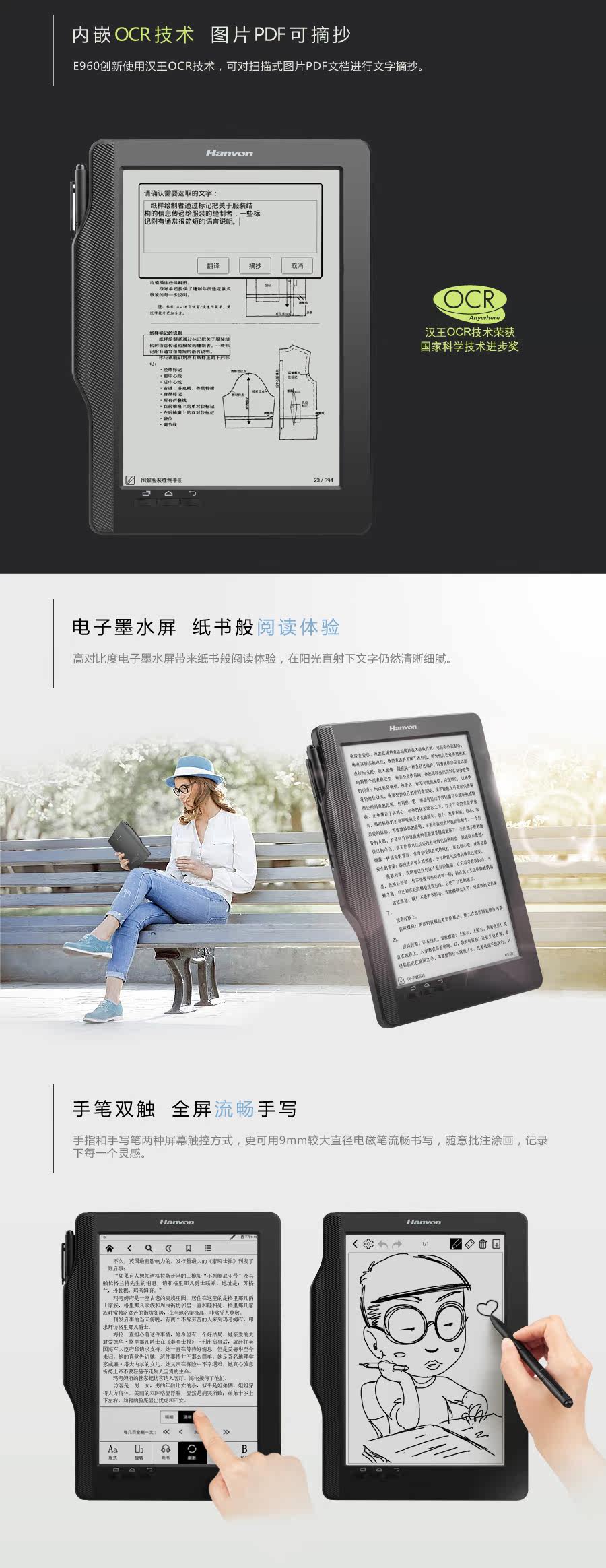 Hanwang e -Буфтная книга e 960plus 9.7 -inch hanwang e -book