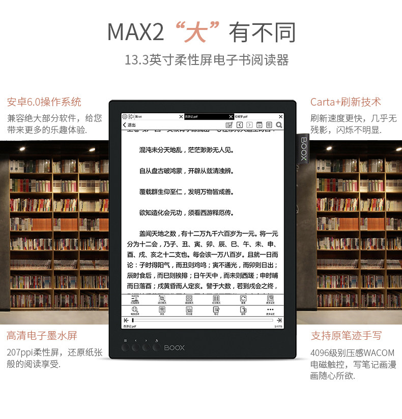 BOOX MAX2 13.3 -INCH ANDROID РАЗРЕШЕНИЕ E -Paper Book Reader одновременно отображает экран e -book чернила