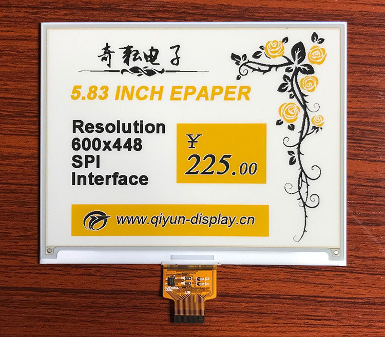 | 5,83 дюйма | GDEW0583T7 | 600×448 | черно-белый | 125.4×99.5×1.18 | 118.8×88.26 | SPI | GDEW0583T7 |