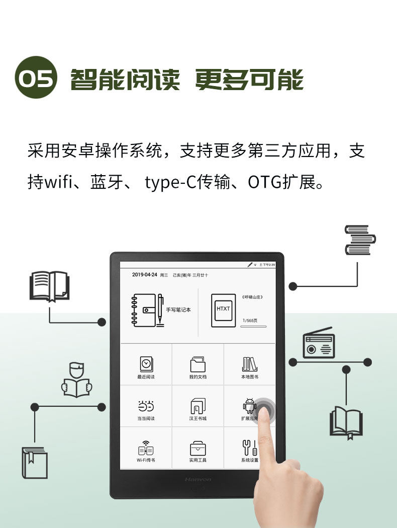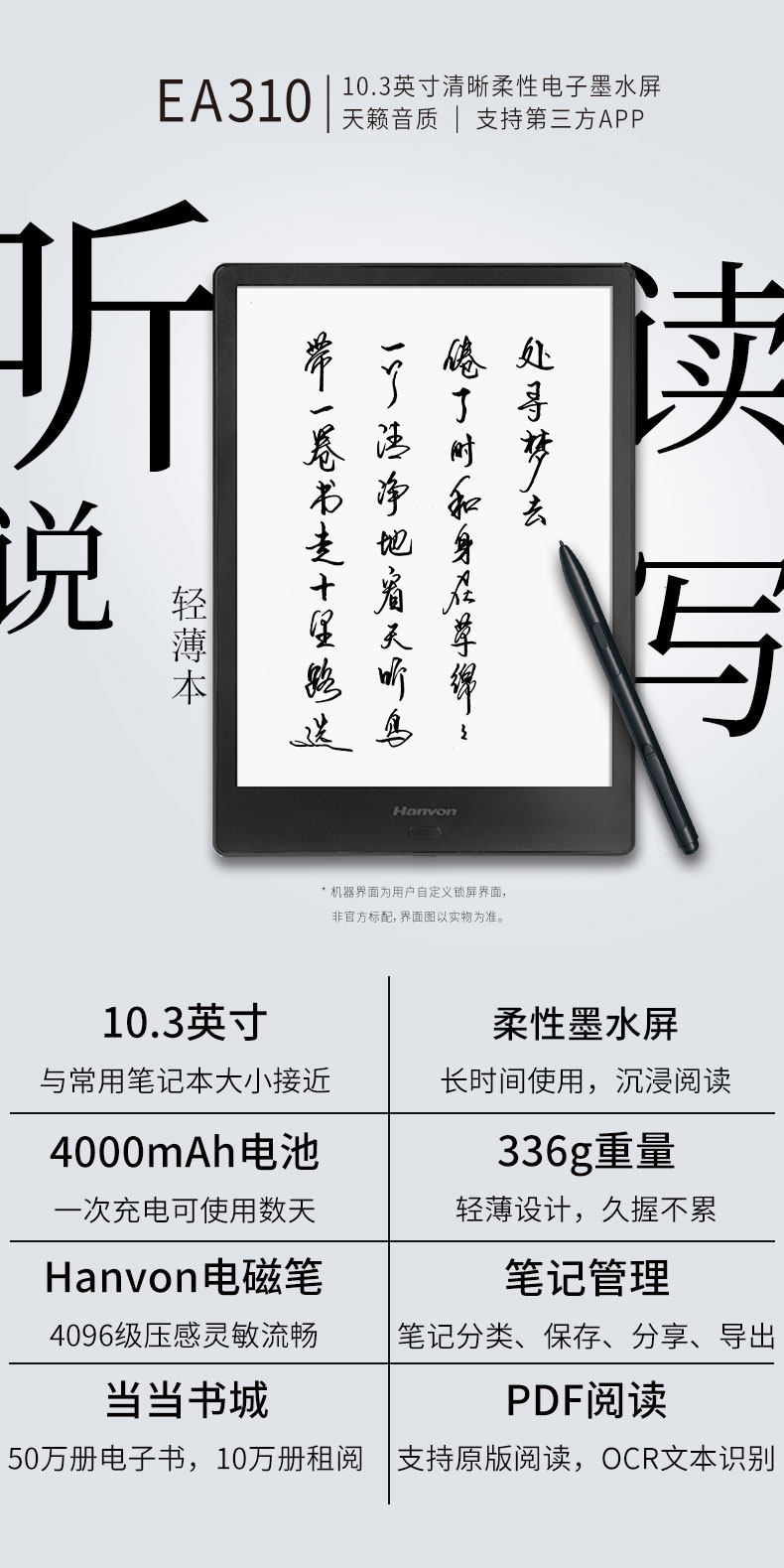 Электронное чтение, чернила, электронный сенсорный блокнот, 10.3 дюймов, широкий экран, сенсорный экран