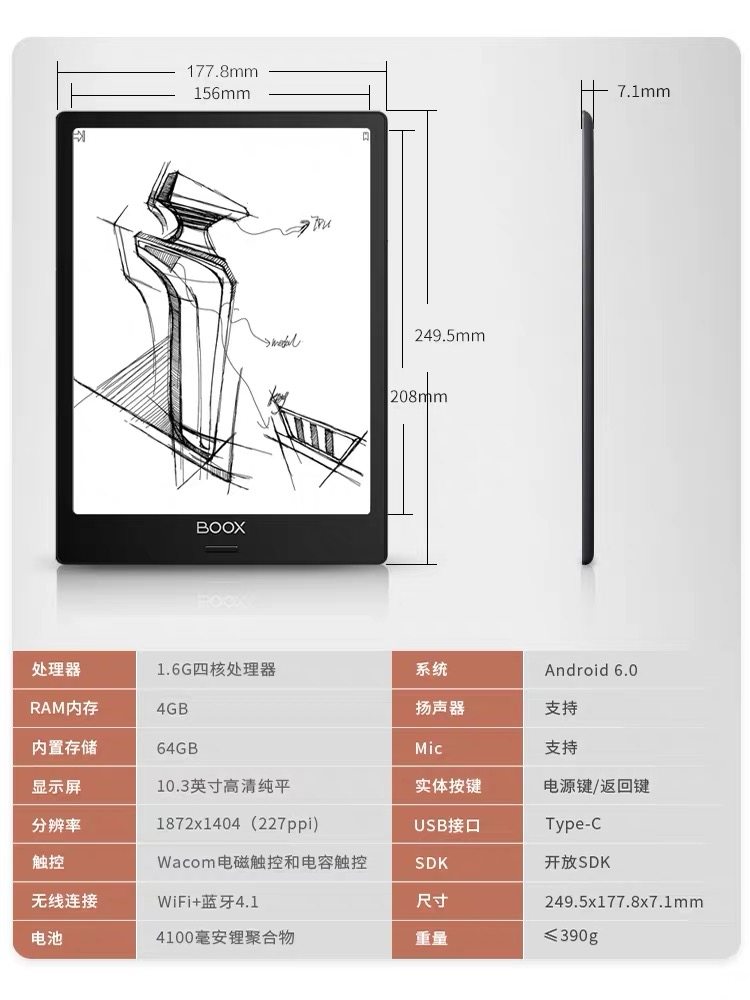 Boox Two Stone Note Pro 10.3 -INCH PURE PURE HINT -ANDROID Book Book Reader Electric Paper Book