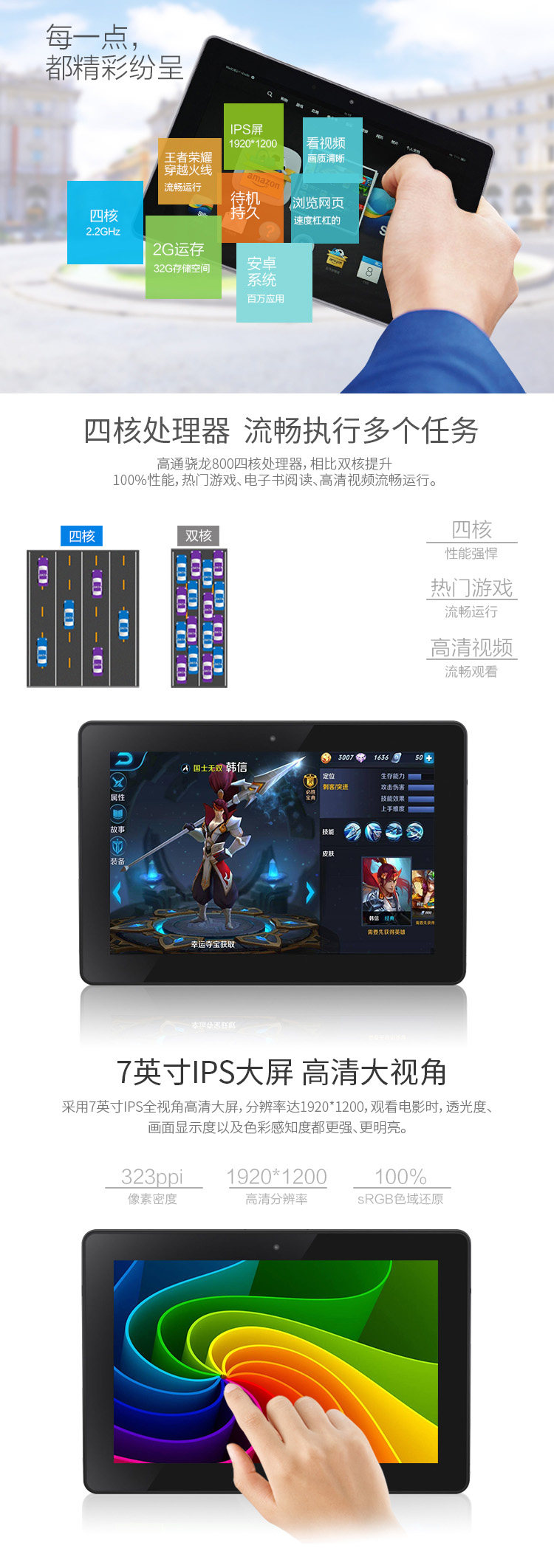 7 -INCH 1920X1200IPSНизкий глянец, ультра -высокий дисплей (323ppi) 100%SRGB Color Gamut, 2,2 ГГцQuad -core Qualcomm Snapdragon800cpu, Adreno 330GPU и2 ГБ запускает память 16G остается 11 г, 32 г, осталось 25G, 64G, оставленная 55 г, Wi-Fi (Mimo + HT40) с двойными двойными антеннами.Фронт 720pКамера, поддержкаDolby Sound EffectС двойным динамиком, дизайн поддержки на задней панели, 9,0 ммОчень тонкийФузеляж, не поддерживает расширение, не приносит GPS, светло -голубой край вокруг экрана спроектирован заводом,4400Посмотрите видео в течение 5 часов,Система Android 5.1 по умолчанию (Bluetooth не может быть использована)