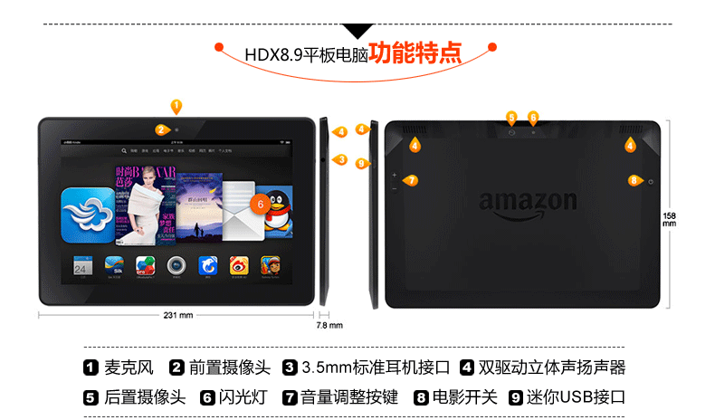 Четырёхъядерный ультратонкий умный планшетный ноутбук, Amazon, 8.9 дюймов, андроид