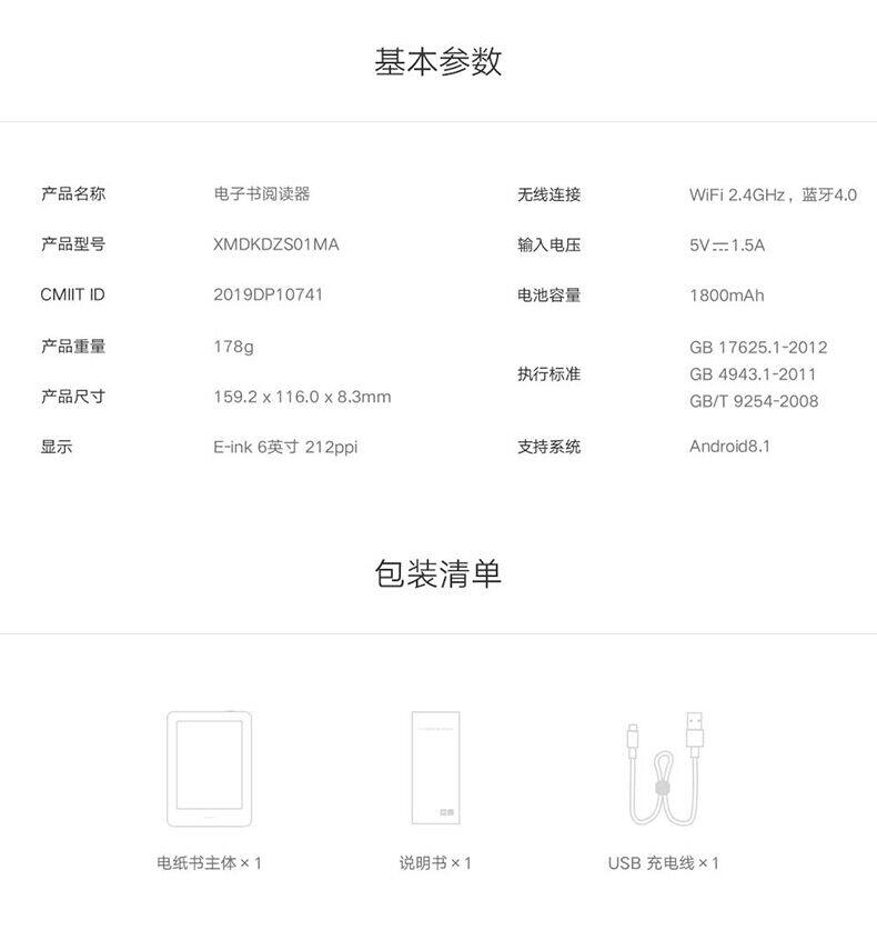 [SF Shipping] Xiaomi Подробнее E -e -Paper Book Office Touch Screen Students 6 -INCH ROONELS PDF Свет
