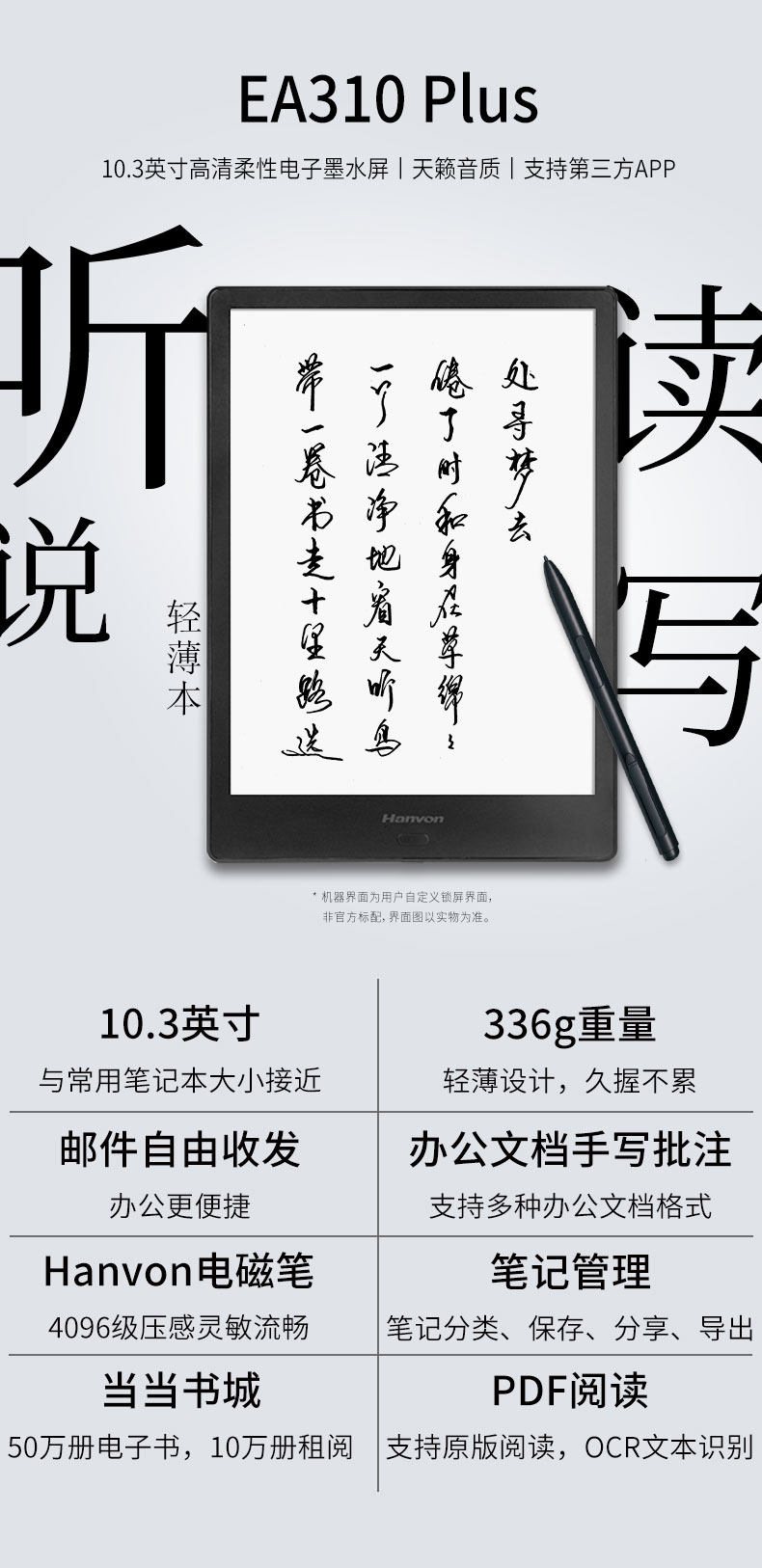 Чтение, чернила, сенсорный блокнот, беспроводной ноутбук, 310plus, 10.3 дюймов, широкий экран, сенсорный экран, бизнес-версия