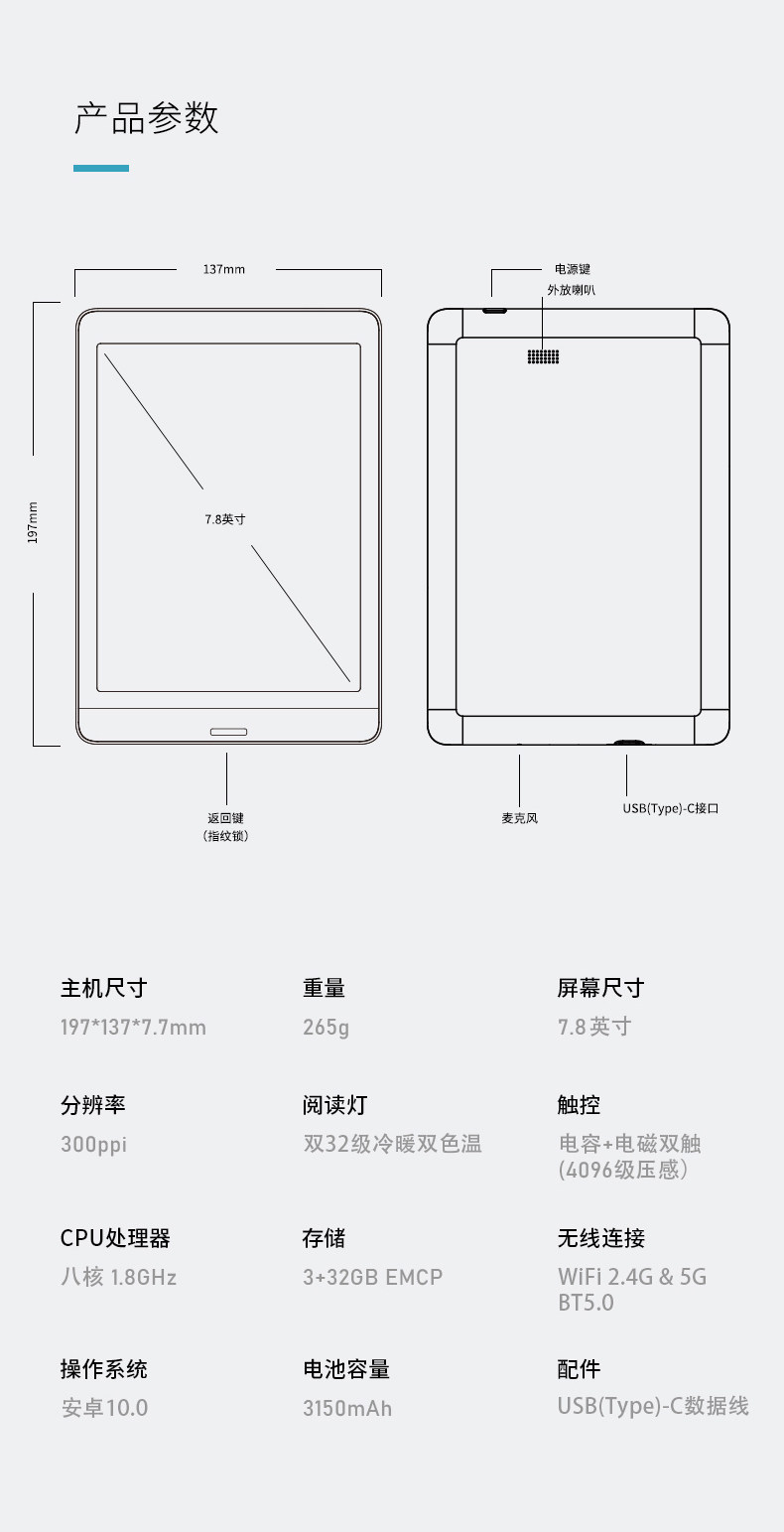 Электронное чтение, чернила, планшетный портативный электронный ноутбук, 7.8 дюймов, широкий экран, Android 10