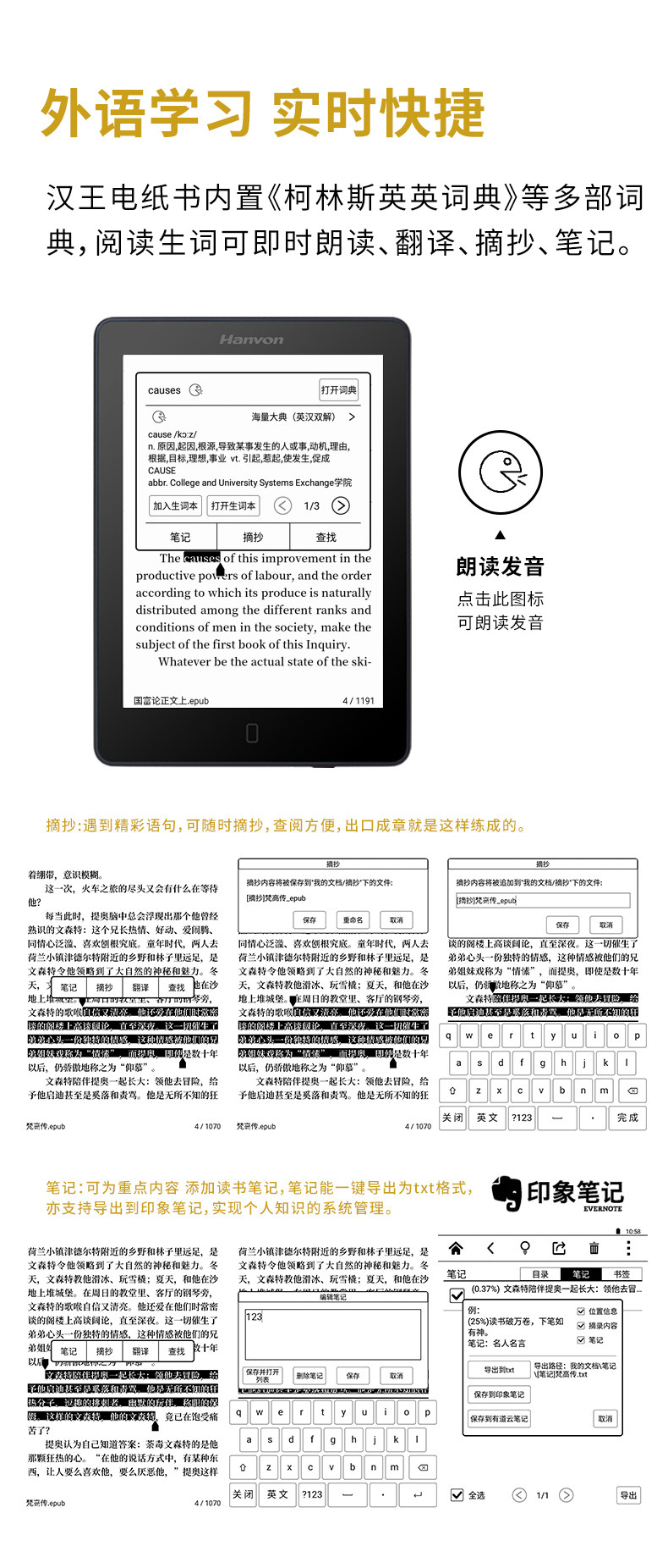 Золотое электронное чтение, умные чернила для школьников, 6 дюймов, защита глаз