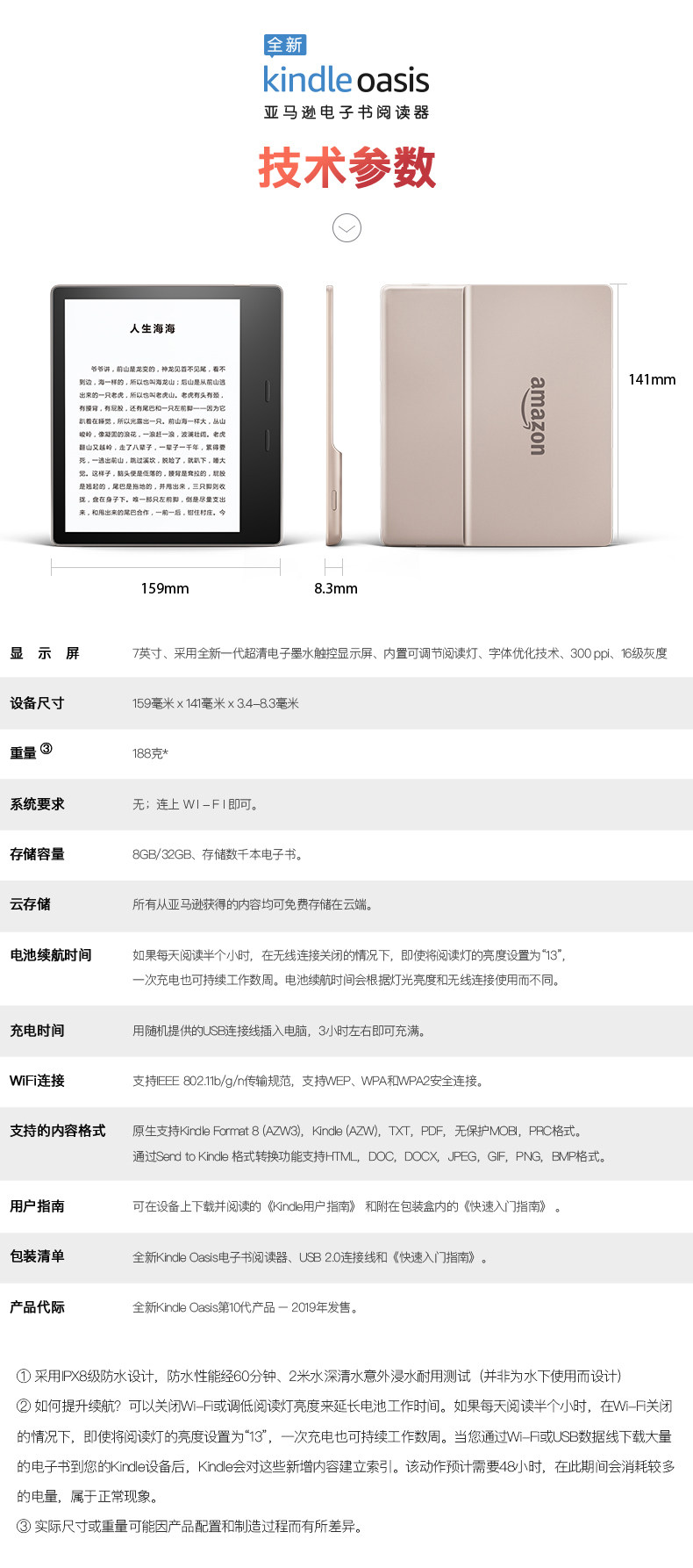 Зарубежная версия Kindle Oasis3 Generation Electronic Paper Reader Amazon Ko3 E -Book 7 -INCH Ecrem