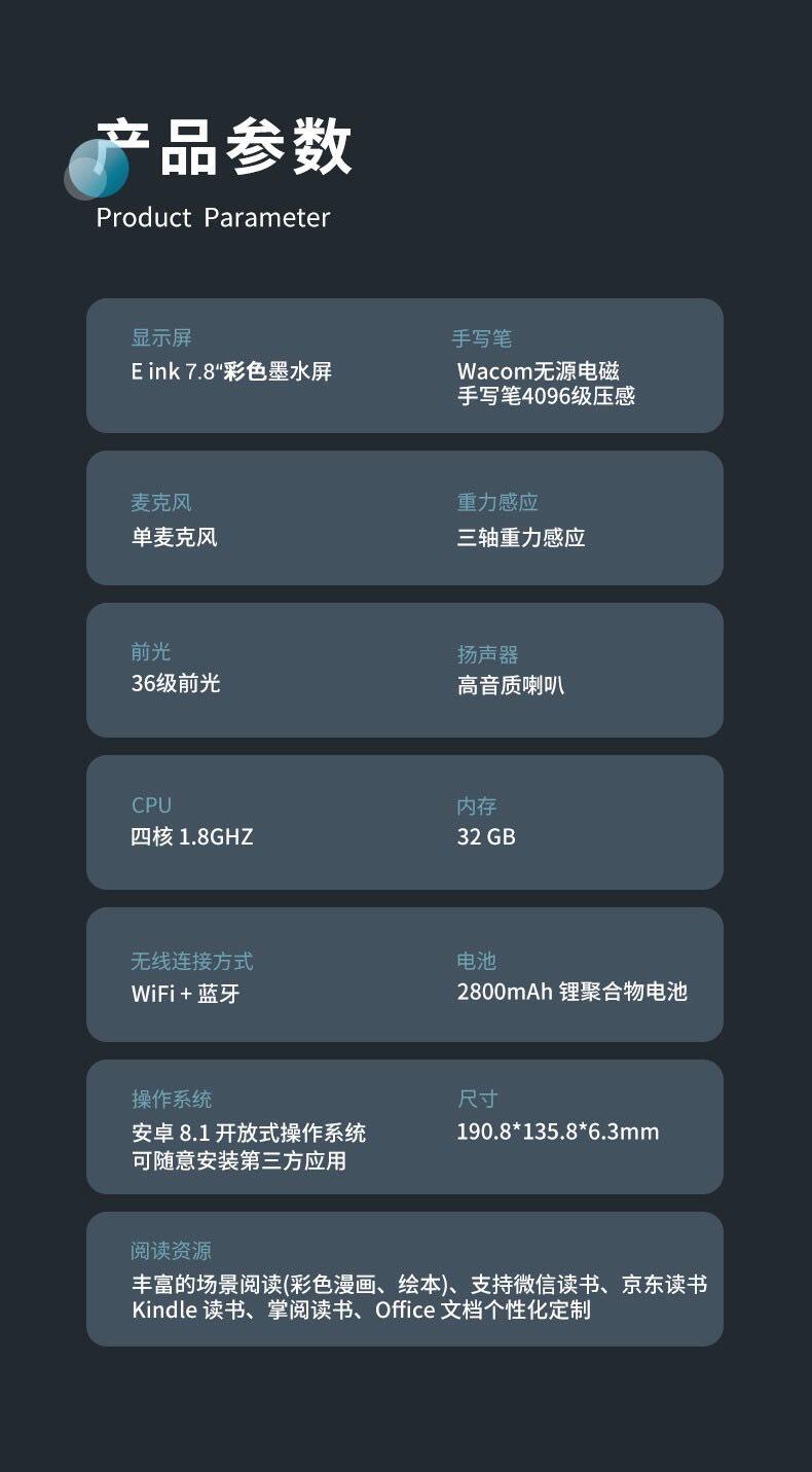 Электронные чернила, сенсорный электронный ноутбук, чтение, 7.8 дюймов