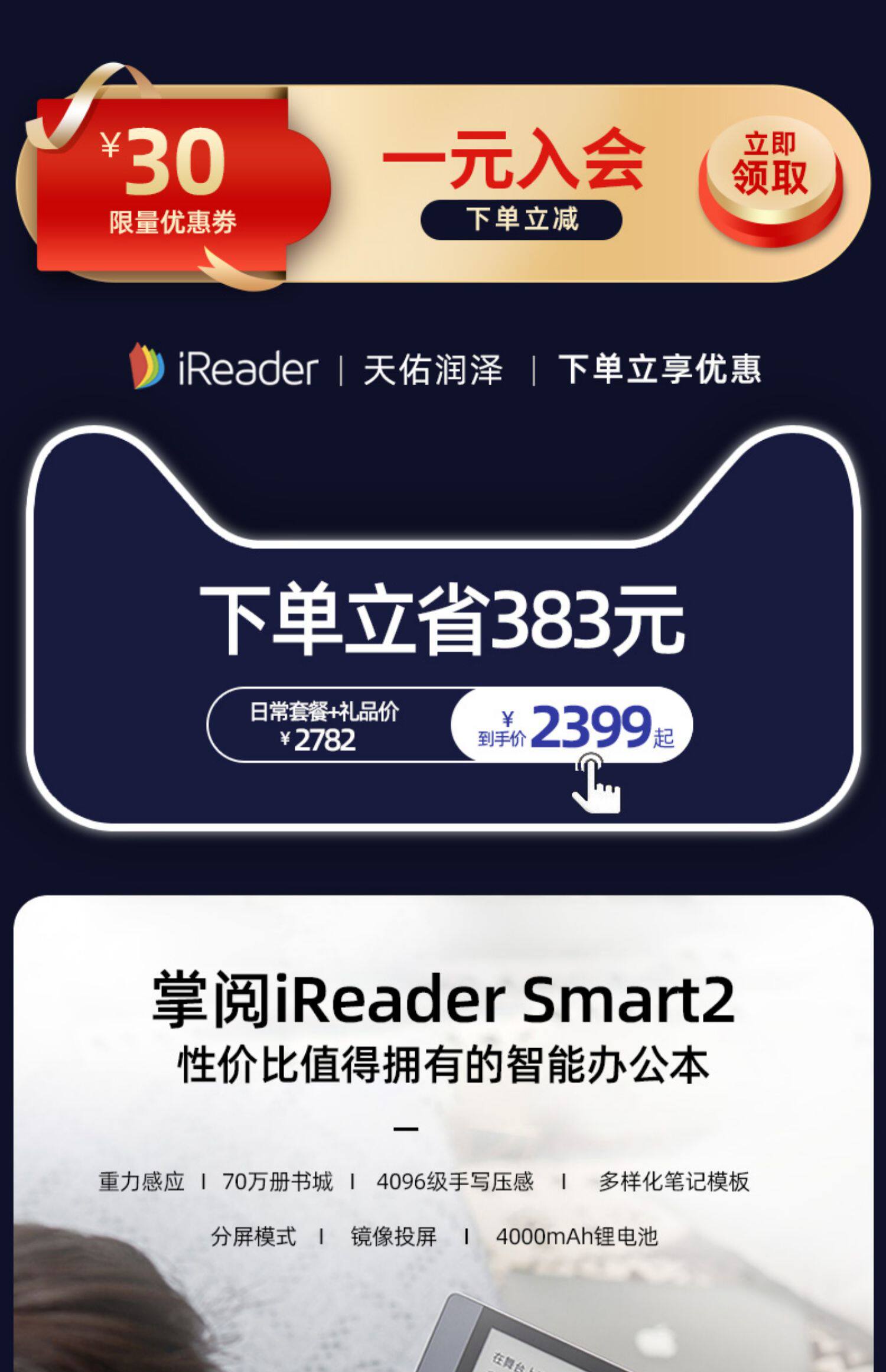 [Уменьшение 30] Чтение Ireader Smart2 Большой -экрановый e -книга Reader 10.3 -INCH Экран Экран Умный почерк