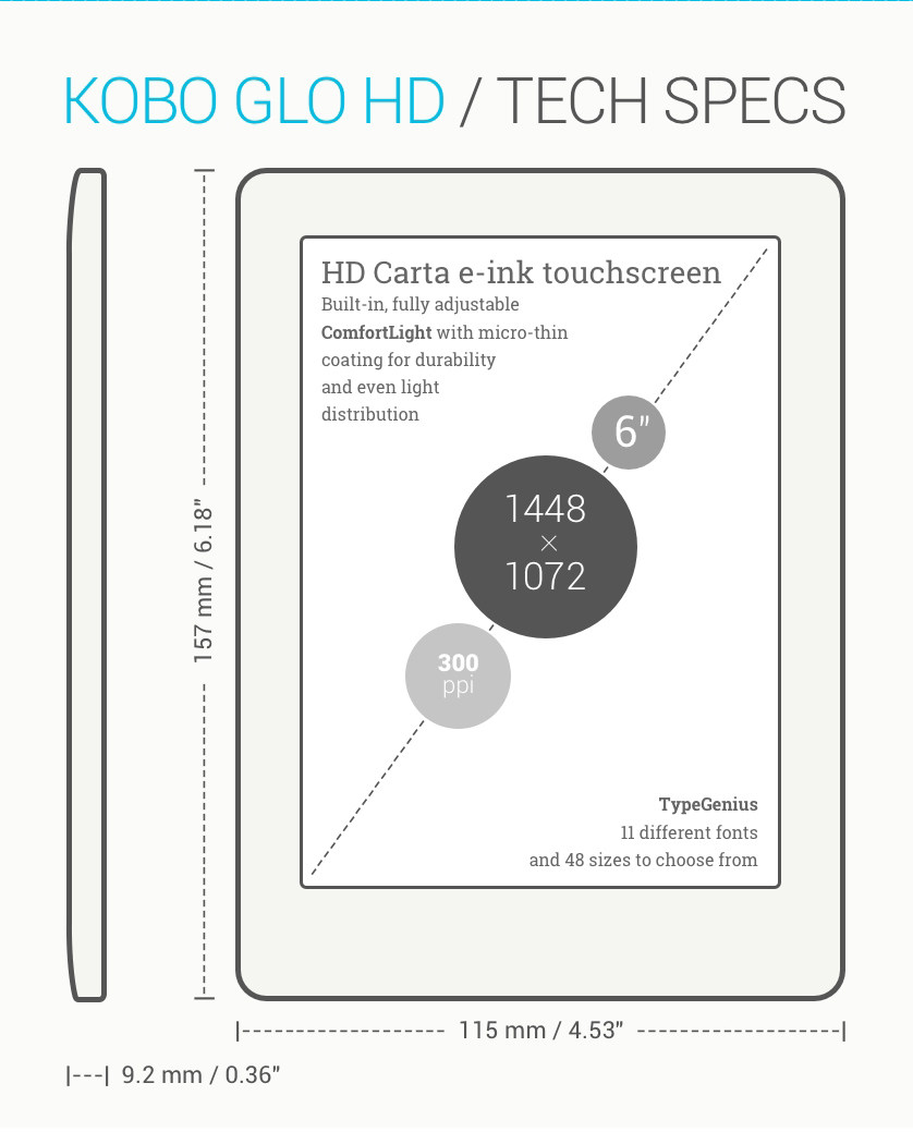 Rakuten Kobo Glo HD 300Ppi HD 6-дюймовая читалка электронных книг с чернильным экраном, цифровая бумажная книга Seconds Kpw4