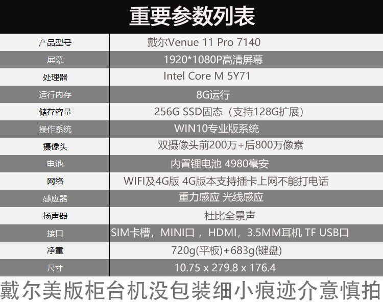 Dell Dell Progine 11 Pro 7140 Win10 Business Business Tablet Computer Two -In -One