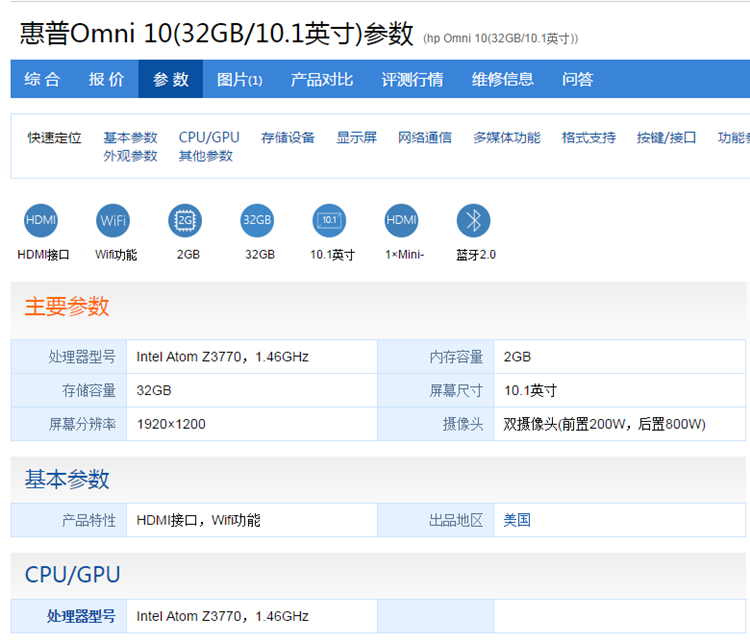 惠普 /HP Omni 10 -INCH Windows 10 System Business OfFIC