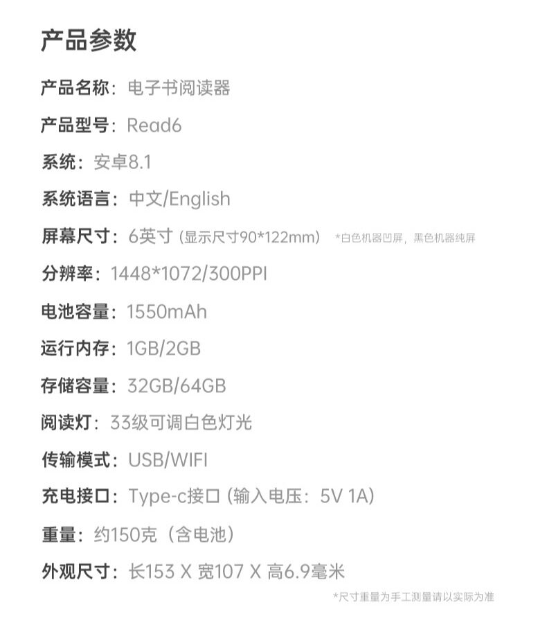 Hanlin Read Read6 300ppi Ink Screen Reader