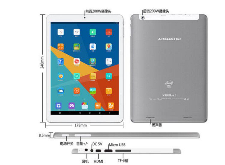 Teclast, ультратонкий планшетный ноутбук, x98, 98 plus, андроид, windows10, 10шт