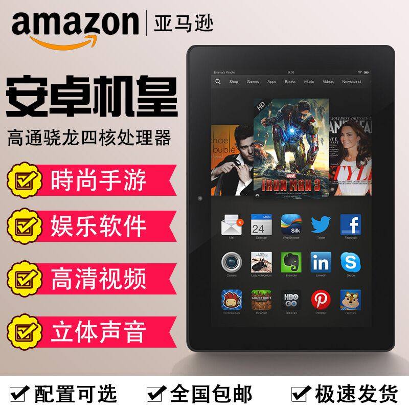 亚马逊 Kindle Fire Three -Generation HDX7 -INCH Qualcomm Game Pablet Computer Reader e -Book Reader -ультра