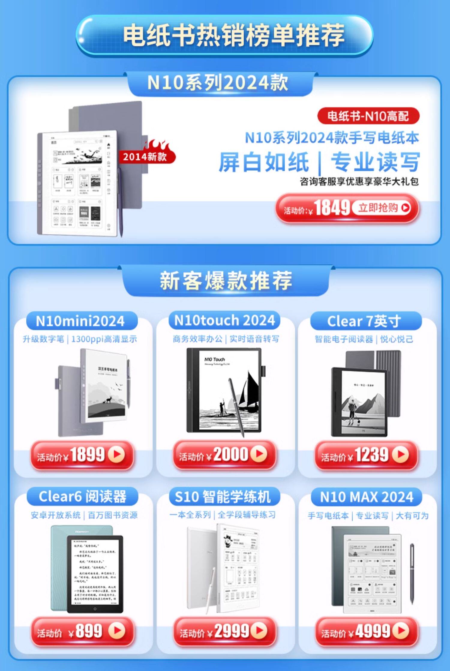 2024 Новый продукт Hanwang e -бумага книга Clear6pro300ppi6 дюйм высотой высотой