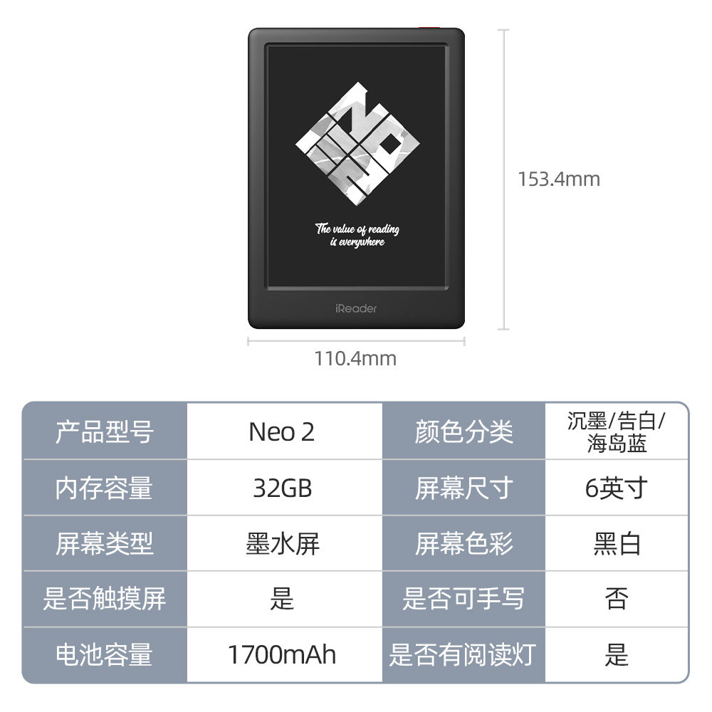 【Консультации уменьшены】】 Zhangyu Ireader Neo2 Электрическая бумага 300ppi Ink Screen Reader 6-дюймовый интеллектуальный экран для чтения для чтения для чтения глаз.